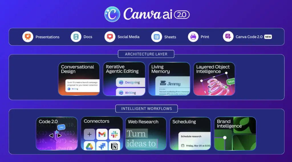 Trọng tâm của lần ra mắt là Canva AI 2.0 – phiên bản AI mới được định vị như một “creative partner” thay vì chỉ là công cụ hỗ trợ.