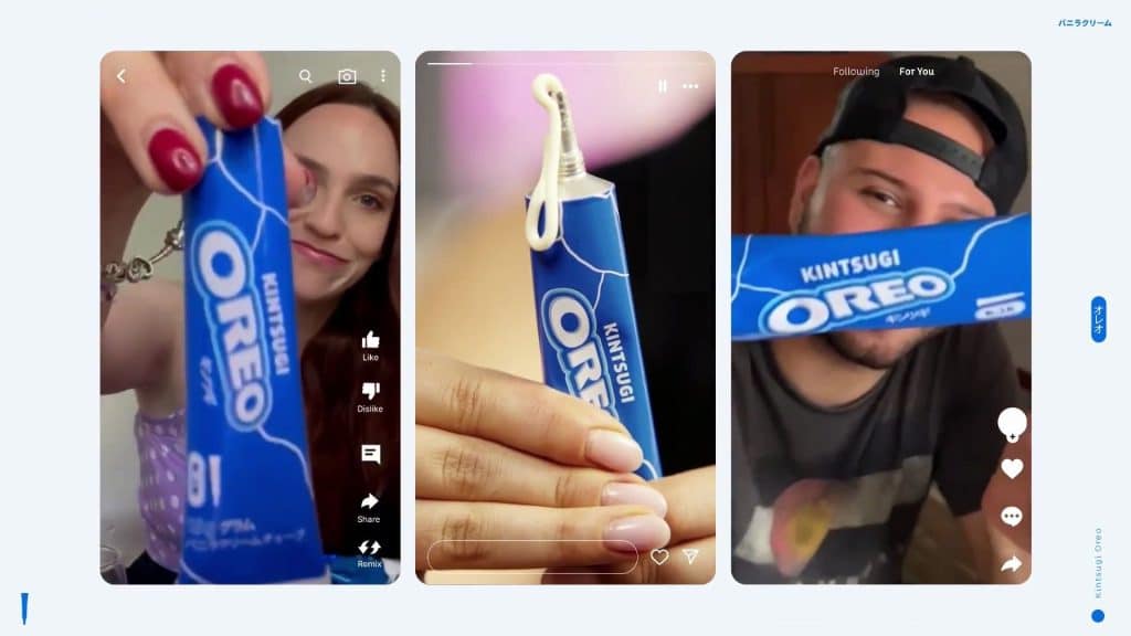 Chiến dịch tiếp thị ‘Kintsugi’ của Oreo giải quyết vấn đề bánh quy bị hỏng bằng cách lấy cảm hứng từ nghệ thuật cổ xưa cùng tên của Nhật Bản. Kintsugi, có nghĩa là “dùng vàng để hàn gắn”, là phương pháp sửa chữa đồ gốm hỏng bằng cách “vá” lại những chỗ bị vỡ bằng sơn mài phủ bụi hoặc trộn với bột vàng, bạc hoặc bạch kim. Kỹ thuật này không chỉ phục hồi đồ vật mà còn tăng thêm vẻ đẹp và giá trị cho đồ vật bị vỡ.