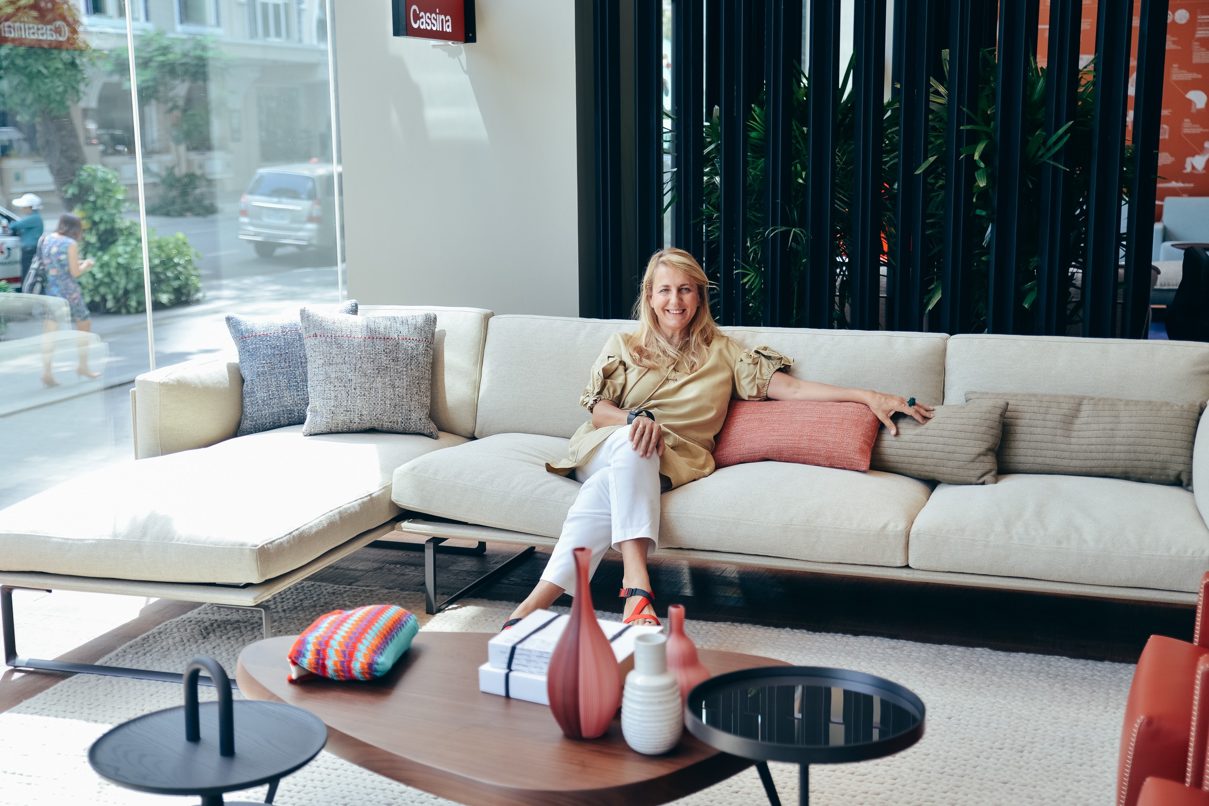 Patricia Urquiola bên tác phẩm của mình tại khu trưng bày của Cassina