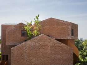 Chuồn Chuồn Kim 2 – trường mầm non xây dựng bằng gạch trần với các lỗ hở như một tòa lego khổng lồ vui mắt