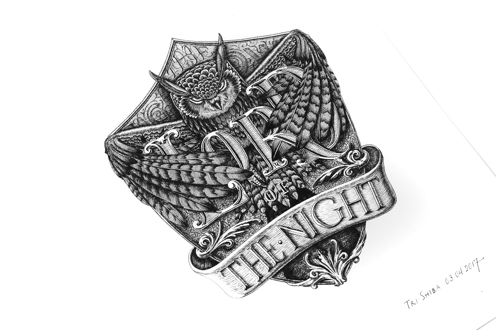 Tác phẩm “The lord of the night”, thực hiện thủ công bằng bút mực trên giấy, trong 35 giờ của Trí Shiba