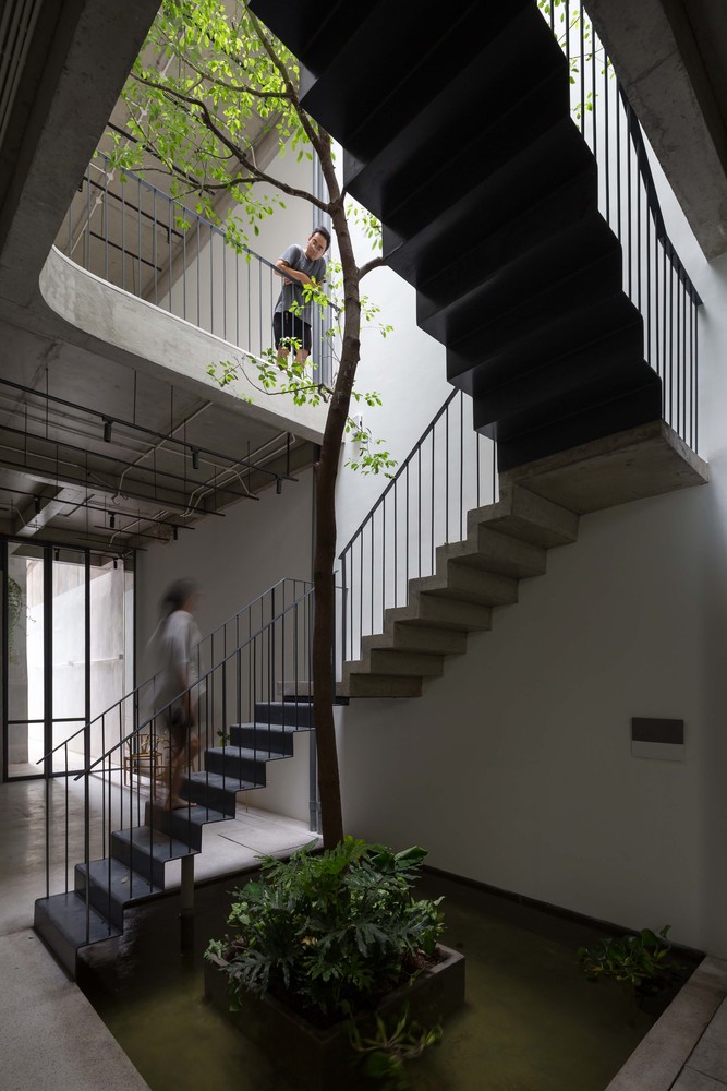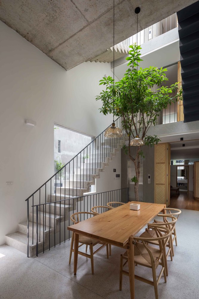 Ngoài ra, phòng ngủ của hai con nằm phía trên khu vực chung chính, bên cạnh các khoảng trống, cho phép kết nối với các thành viên trong gia đình ở tầng dưới. Khu vực yên tĩnh nằm ở trong cùng của ngôi nhà, bao gồm phòng ngủ của ông bà và phòng ngủ chính của bố mẹ. Yếu tố quan trọng của không gian nội thất là ba khoảng trống ngăn cách thể tích ngôi nhà để cung cấp ánh sáng tự nhiên vào các không gian tầng thấp hơn của ngôi nhà.