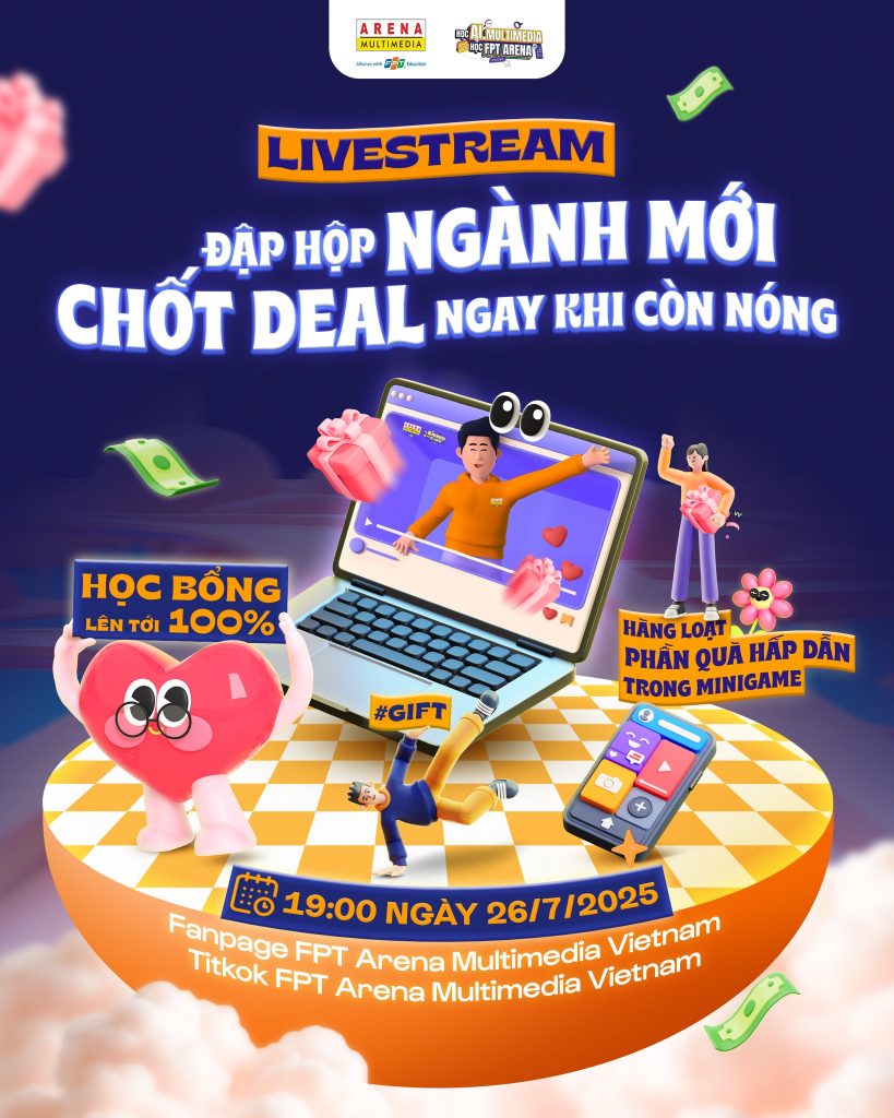 Trong thời gian livestream, người tham gia sẽ được tư vấn một – một, đặt câu hỏi trực tiếp về chương trình học, lộ trình nghề nghiệp. Đặc biệt, chỉ trong buổi Megalive, FPT Arena Multimedia sẽ tung ra 3 deal ưu đãi giới hạn: