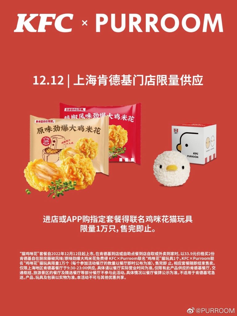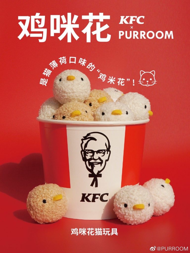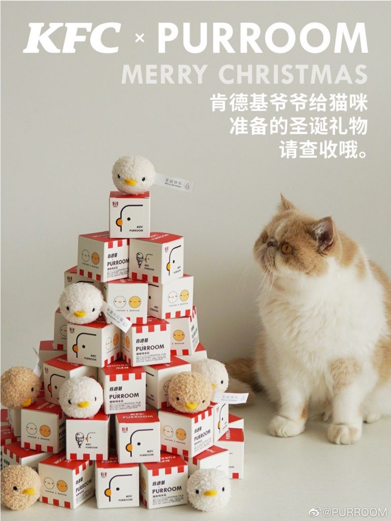 KFC Trung Quốc vừa có màn hợp tác với thương hiệu nội thất thú cưng PUROOM trụ sở tại Thượng Hải để ra mắt món “xôi gà” dành cho những chú mèo dễ thương chào mừng năm Quý Mão.