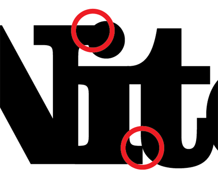 Việc hiệu chỉnh Kerning chặt đã mang đến cho logo một diện mạo hiện đại và hấp dẫn hơn, nhưng nó lại làm cho dấu chấm tròn của ký tự “I” xen vào ký tự ‘N’ , nên việc tôi sử dụng hình mặt trăng lưỡi liềm là một giải pháp hoàn hảo. Thêm nữa, cần loại bỏ đi một phần của chữ “I” theo nét của chữ “t” để xử lý việc chạm vào nhau giữa hai ký tự chữ này.