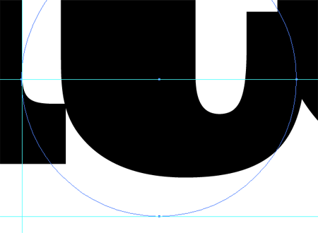 Đường Guide thứ ba được đặt sẽ nằm ở phần thấp nhất của cạnh thẳng của chữ “I”. Tạo mới một hình tròn lớn, đặt nó nằm song song với nét ngoài của chữ “I” như hình minh họa trên.