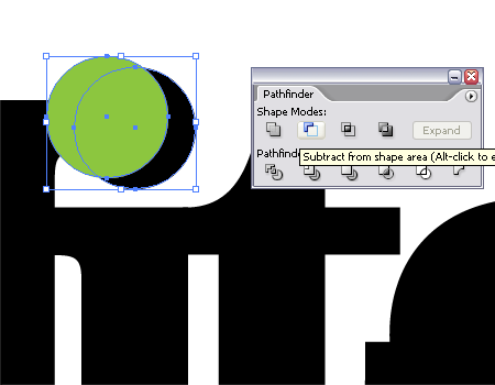 Tiếp theo, chọn Subtract from Shape Area trong bảng công cụ Pathfinder để loại bỏ đi phần dư của chữ “I”
