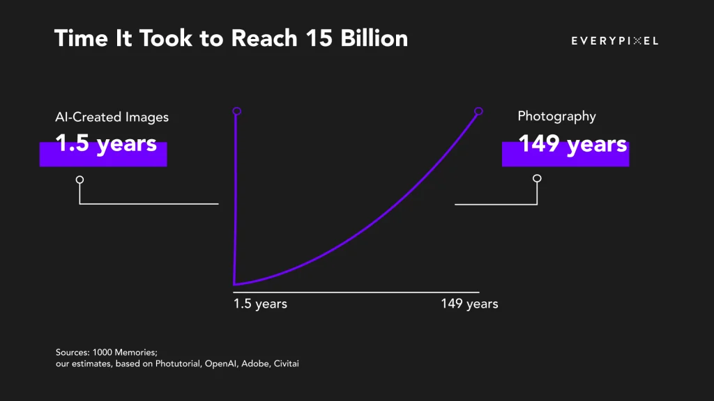 Sự ra đời của nhiếp ảnh vào năm 1826 đã đánh dấu bước ngoặt lịch sử làm thay đổi thế giới mãi mãi. Tính đến năm 1975, 150 năm kể từ khi nhiếp ảnh ra đời, tổng số bức ảnh được chụp đã lên tới 15 tỷ. Tuy nhiên với sự xuất hiện của trí tuệ nhân tạo, chỉ trong vòng một năm qua AI đã tạo ra được số lượng hình ảnh còn nhiều hơn thế.