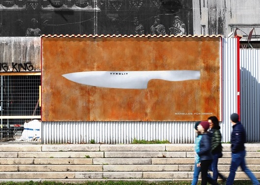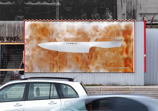 Để quảng bá chất lượng của mình, thương hiệu dao chống gỉ Tyrolit đã cho lắp đặt những chiếc biển billboard ngoài trời đặc biệt.