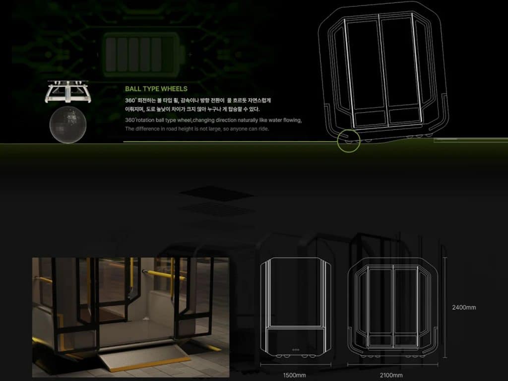 Ý tưởng từ các nhà thiết kế Jiseon Ju và Gawon Min, mẫu concept mang tên “Crosswalk Mobility” dựa trên hệ thống cabin có gắn bánh xe, lấy cảm hứng từ những hệ thống thường dùng trên các sườn dốc trượt tuyết. Điểm khác biệt là, những thiết bị này sẽ được lắp đặt tại các ngã tư để người đi bộ có thể băng qua đường an toàn.