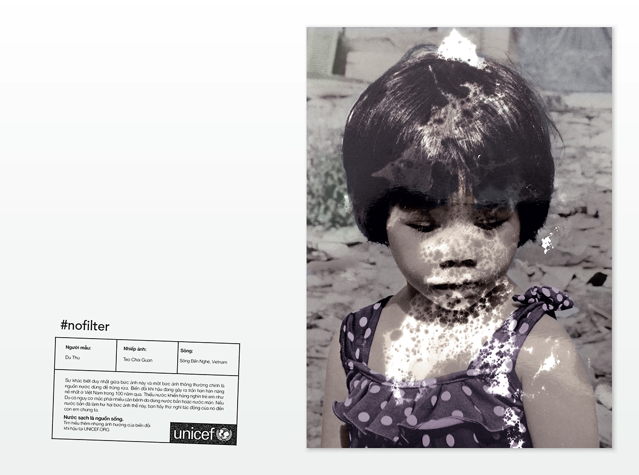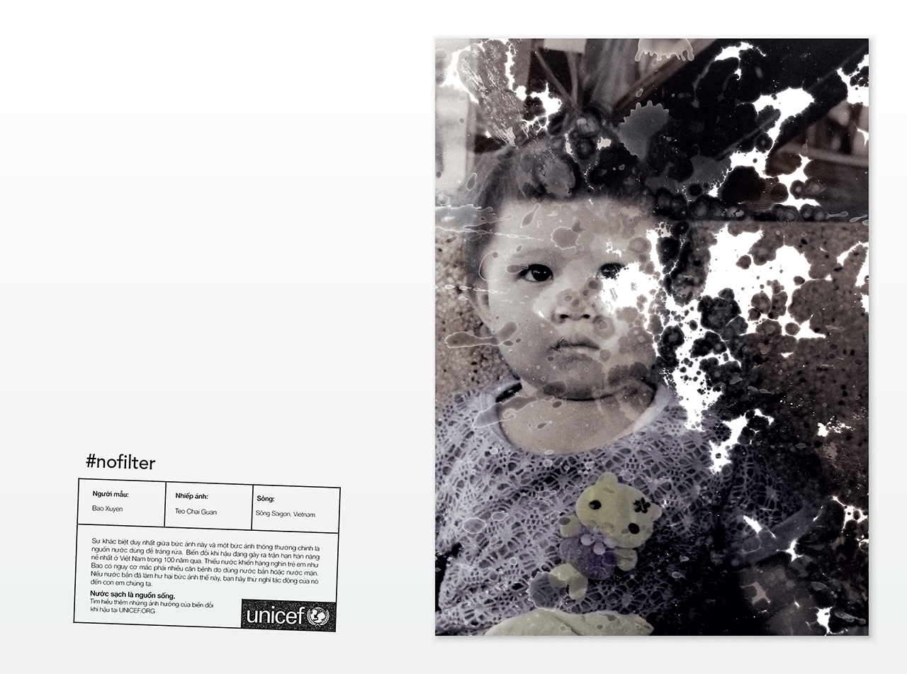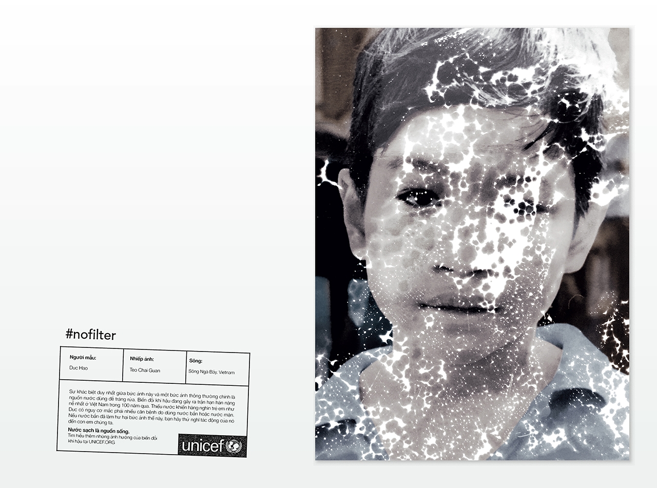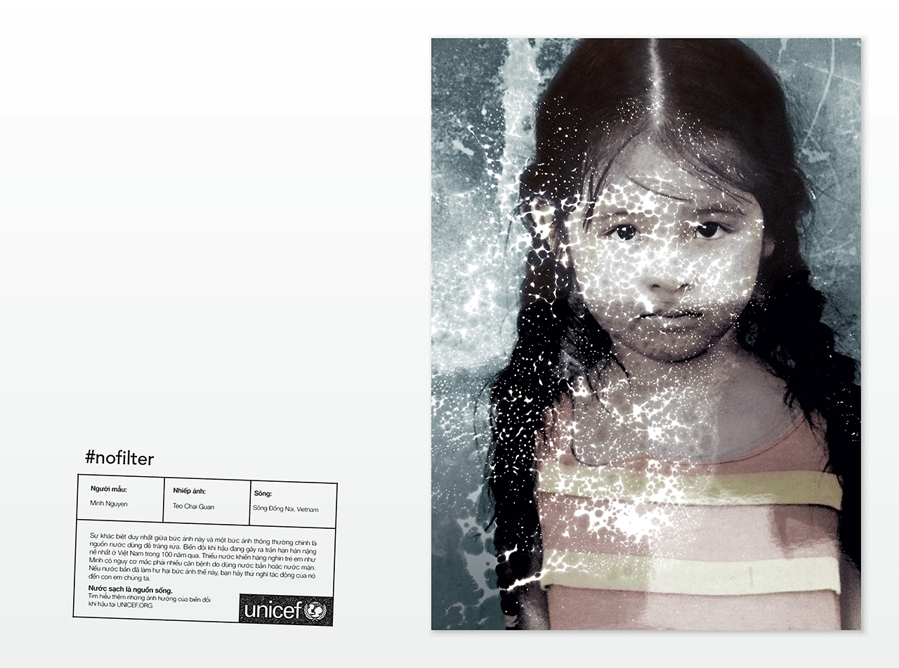 Chiến dịch được Công Ty Kết Nối Sáng Tạo – Happiness Saigon – thực hiện cho tổ chức UNICEF với chủ đề #NOFILTER nhằm kêu gọi mọi người chú ý hơn đến tầm quan trọng của nguồn nước sạch ở Việt Nam do Việt Nam đang phải trải qua những trận hạn hán nặng nề.