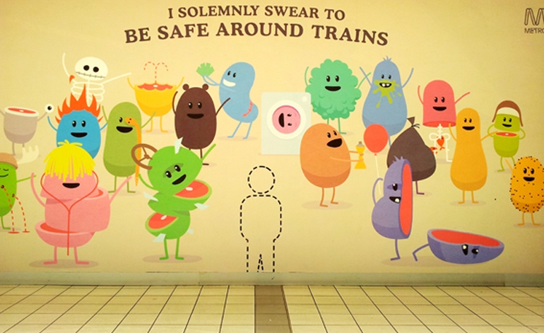 Thay vì sử dụng những cách truyền thống để nói về sự nguy hiểm khi không đảm bảo an toàn đường sắt, họ đã chọn cách tiếp cận giới trẻ bằng những thông điệp đầy tính giải trí để thuyết phục giới trẻ tự nguyện chú ý về sự an toàn khi ở trạm tàu điện ngầm.