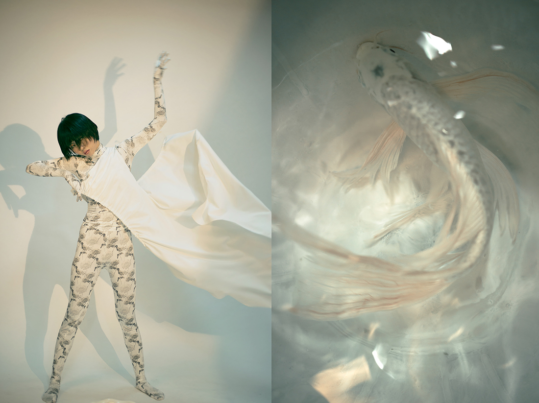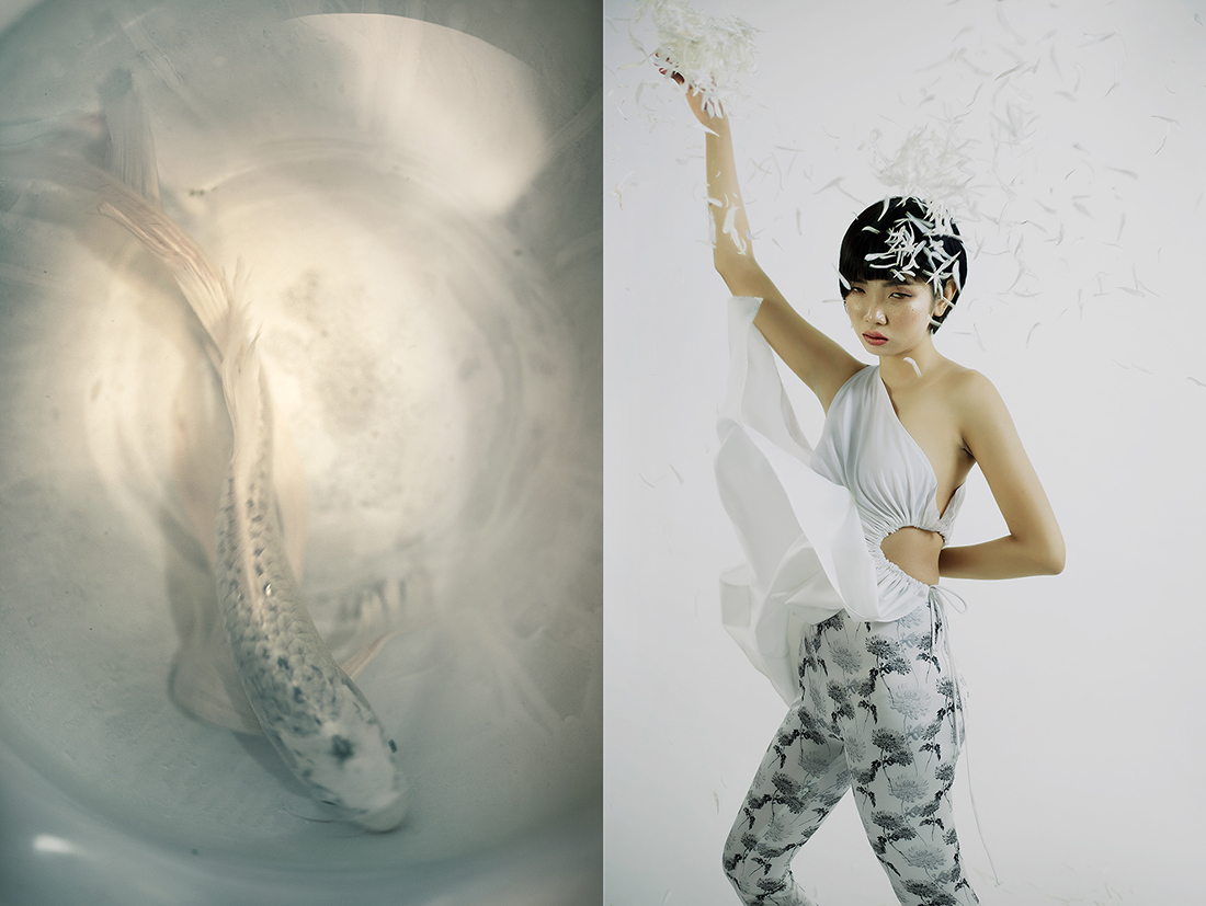 Dự án: Koibito Yo NGƯỜI YÊU DẤU ƠI. Người Yêu Dấu ơi! một thiết kế của Huỳnh Thúy Phượng là Câu chuyện về quá trình chấp nhận của cô gái trước sự ra đi mãi mãi của người mình yêu dấu. "Khi em tìm anh qua những đóa cúc đại. Em tìm anh giữa những mênh mông trắng xóa. Đôi ta mất nhau. Người yêu dấu ơi. " Người yêu dấu, biết bao giờ được trông thấy anh? Người yêu dấu là hiện thân của cá chép Đông Dương trắng, và những cảm xúc giữa tin và không tin, chấp nhận và không chấp nhận, kháng cự và đồng nhất giữa cô gái và người yêu dấu. FASHION: HUỲNH THÚY PHƯỢNG | MODEL: CẨM AN | LIGHTING: BỘI BỘI | M.U.A: KHIẾT AN | ART: CHIRON DUONG