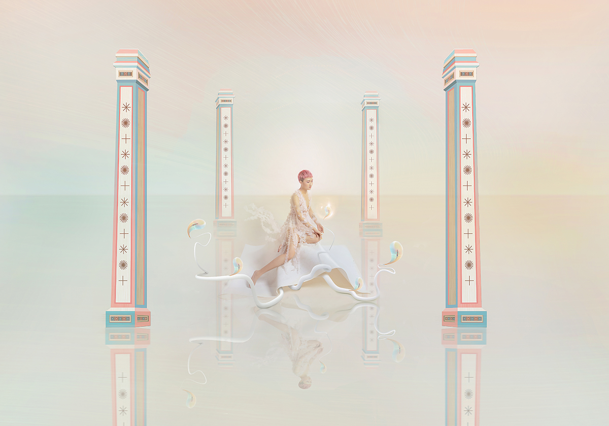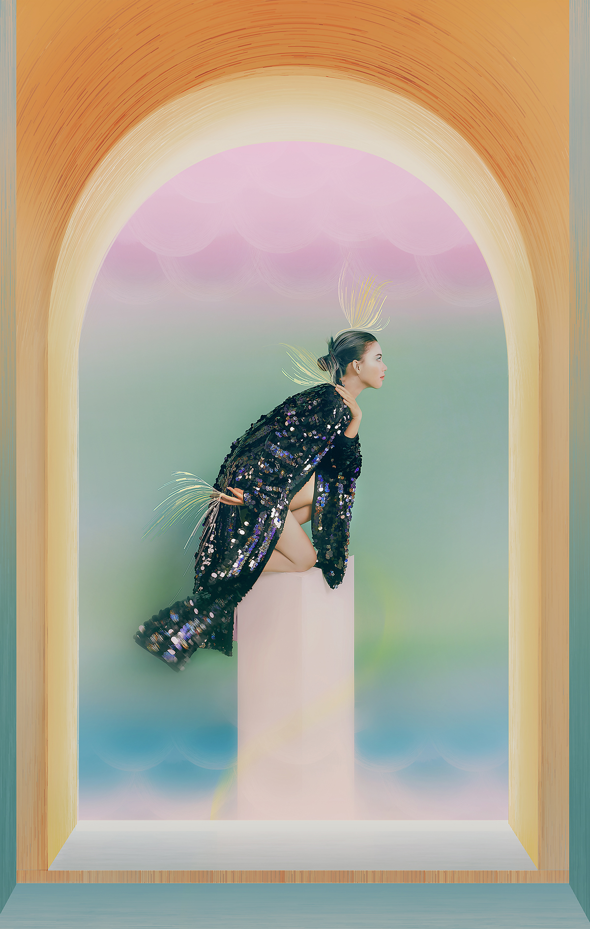 “Hoàng” là bức ảnh mình chụp bạn mẫu của mình bên thiết kế chiếc áo giấy của chị Tú Bông đã xử lý trong vòng nửa ngày được in vào đó là tác phẩm của Todd Huỳnh! Cả bọn đã có một khoảng thời gian cũng nhau cực kỳ xứng đáng luôn. Ở tác phẩm này, Chiron chọn kiểu chụp tách lớp, tụi mình chụp riêng bạn mẫu, riêng phần quần áo và làm hậu kỳ lên bản in tranh của Todd.