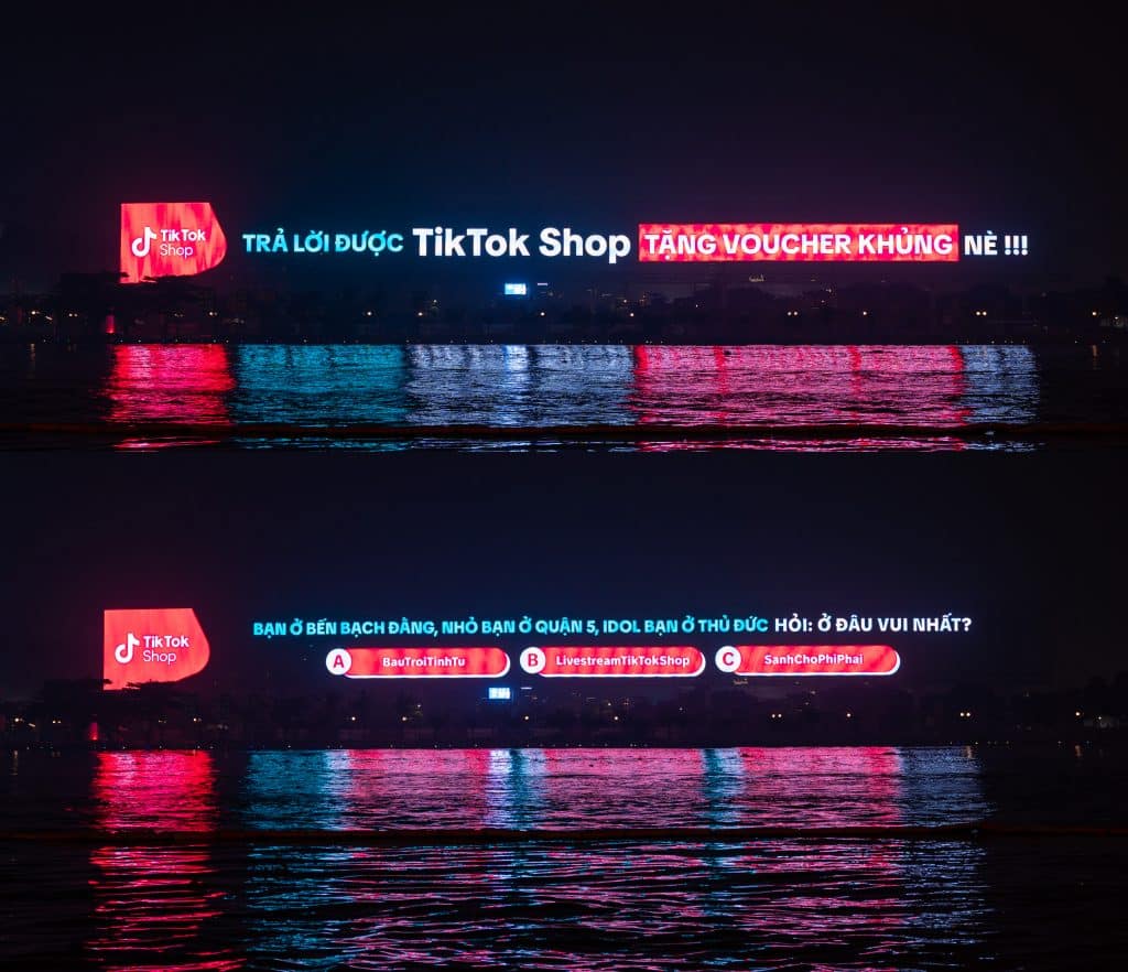 “Phủ sóng” khắp 2 thành phố lớn nhất nhì Việt Nam, chiến dịch OOH “Sale Vui Chốt Năm 12.12” xuất hiện hoành tráng tại các vị trí trung tâm nổi bật ở Hà Nội và Thành phố Hồ Chí Minh, đặc biệt là trên Sky LED Thủ Thiêm – màn hình quảng cáo lớn nhất Đông Nam Á. Những câu hỏi ngắn đầy tính giải trí của TikTok Shop không chỉ khơi gợi sự tò mò của mọi người mà còn làm xua tan đi những giây phút kẹt xe khó chịu. Bên cạnh đó, hình ảnh HURRYKNG đi cùng chiến dịch càng làm tăng thêm sức hút và độ nhận diện cho thương hiệu.