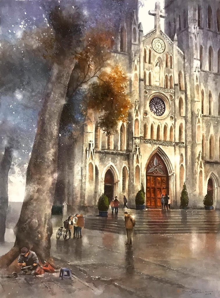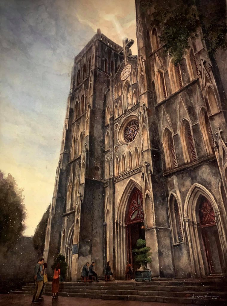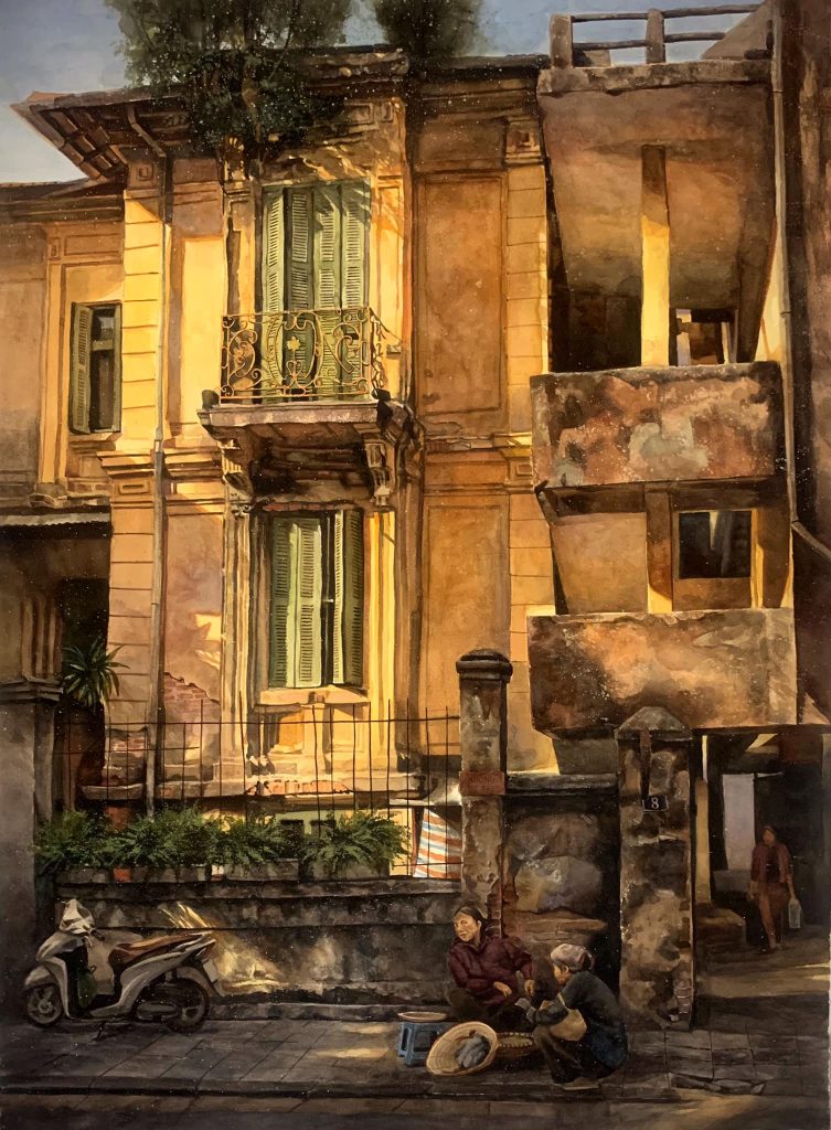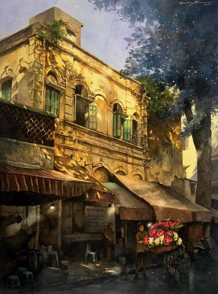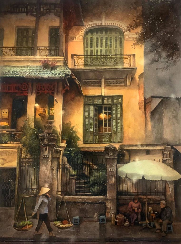 Và ở nơi đó, một “Hà Nội nhẹ nhàng ấm áp, dịu dàng đậm chất thơ” đã khiến anh “yêu từng góc phố từng con đường, yêu lối sống sinh hoạt gần gũi, gắn liền với những hình ảnh xưa cũ vẫn còn được lưu giữ rõ rệt.” Họa sĩ Phong Hoàng cũng đặc biệt mê mẩn với kiến trúc Hà Thành, các toà nhà, các căn biệt thự trên phố cổ, điều mà anh thể hiện nhiều trên các bức vẽ của mình.