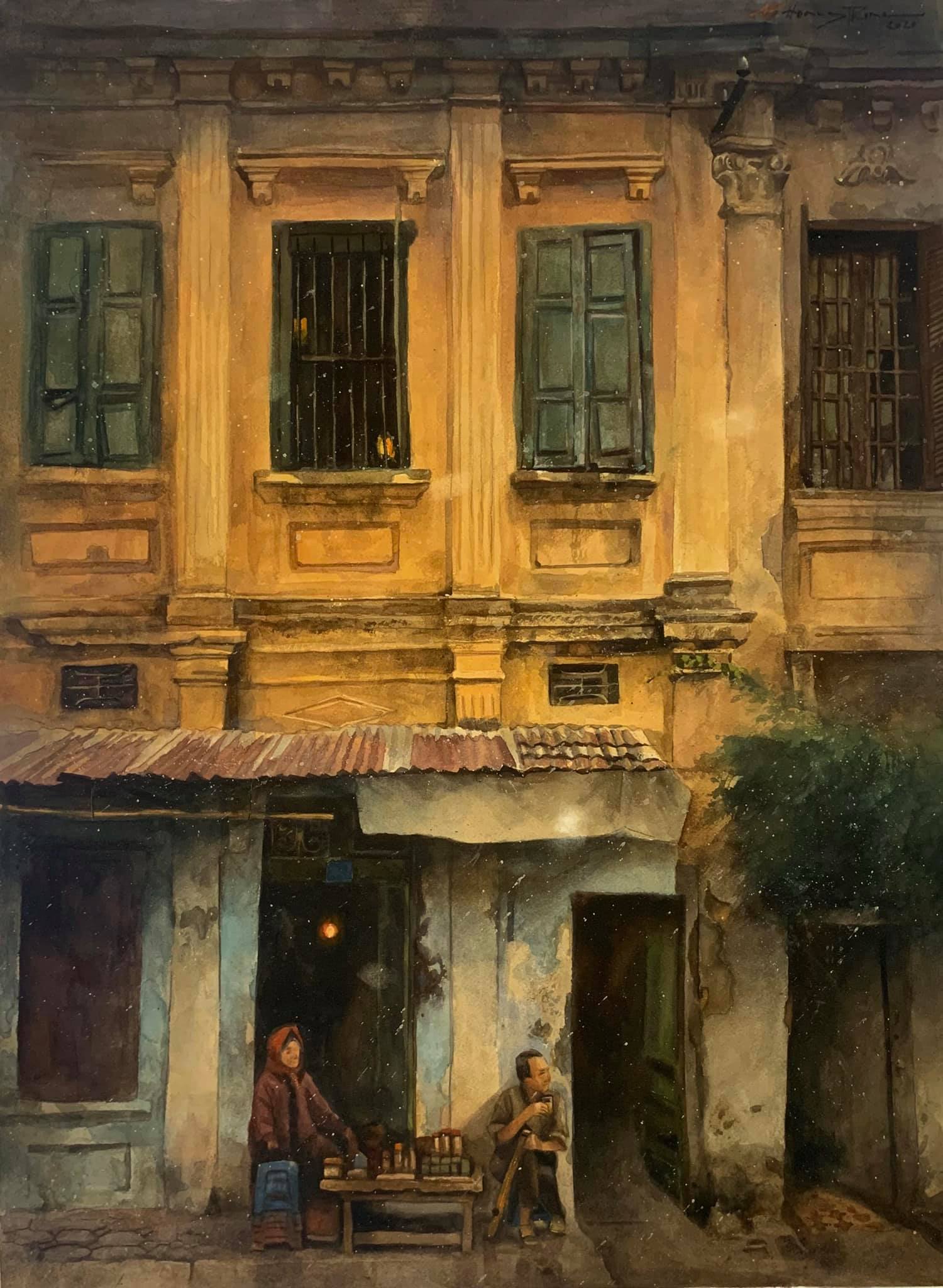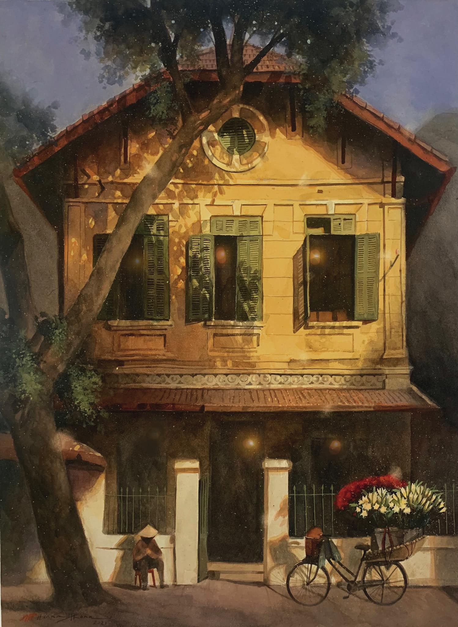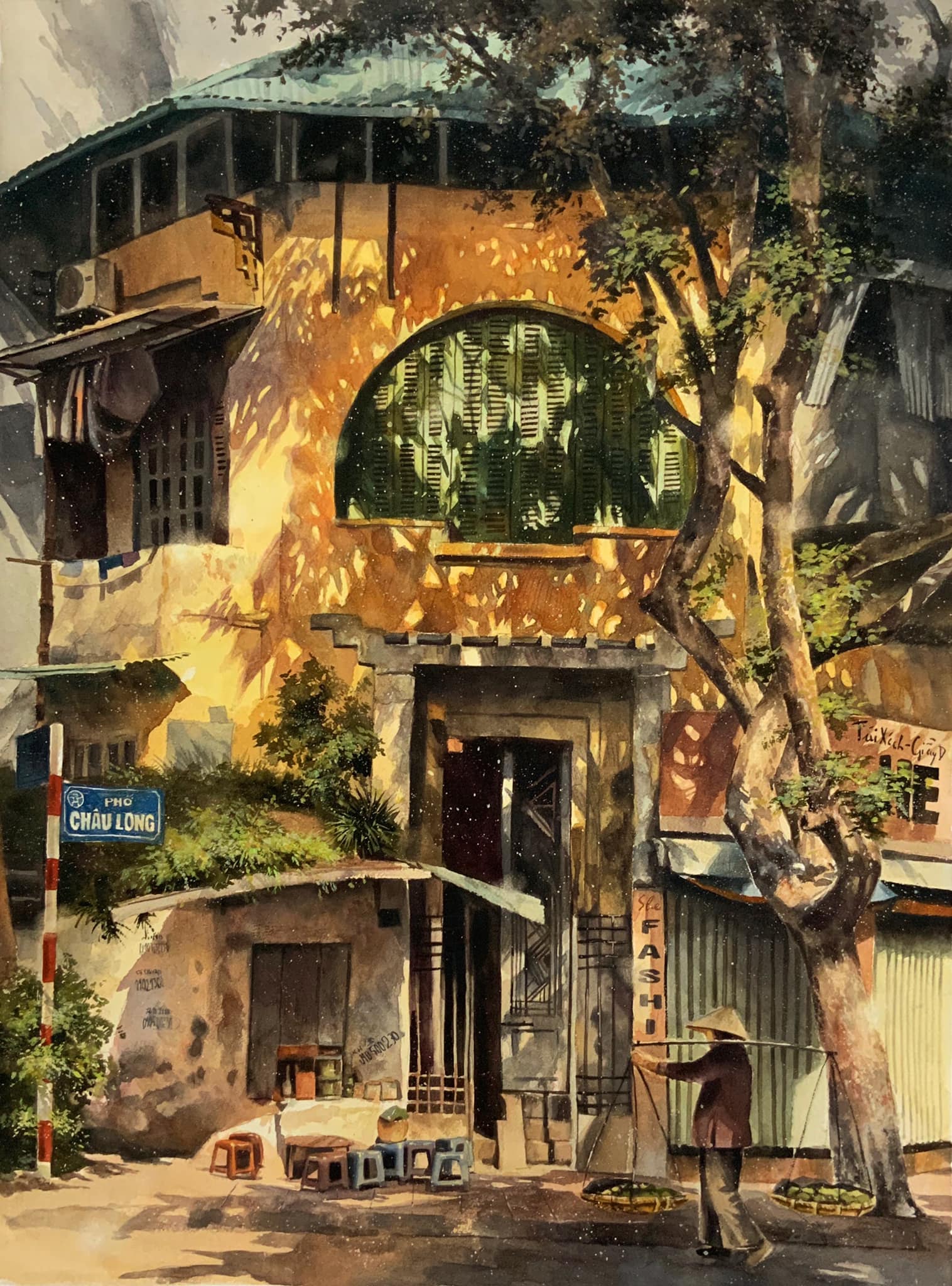 Và ở nơi đó, một “Hà Nội nhẹ nhàng ấm áp, dịu dàng đậm chất thơ” đã khiến anh “yêu từng góc phố từng con đường, yêu lối sống sinh hoạt gần gũi, gắn liền với những hình ảnh xưa cũ vẫn còn được lưu giữ rõ rệt.” Họa sĩ Phong Hoàng cũng đặc biệt mê mẩn với kiến trúc Hà Thành, các toà nhà, các căn biệt thự trên phố cổ, điều mà anh thể hiện nhiều trên các bức vẽ của mình.