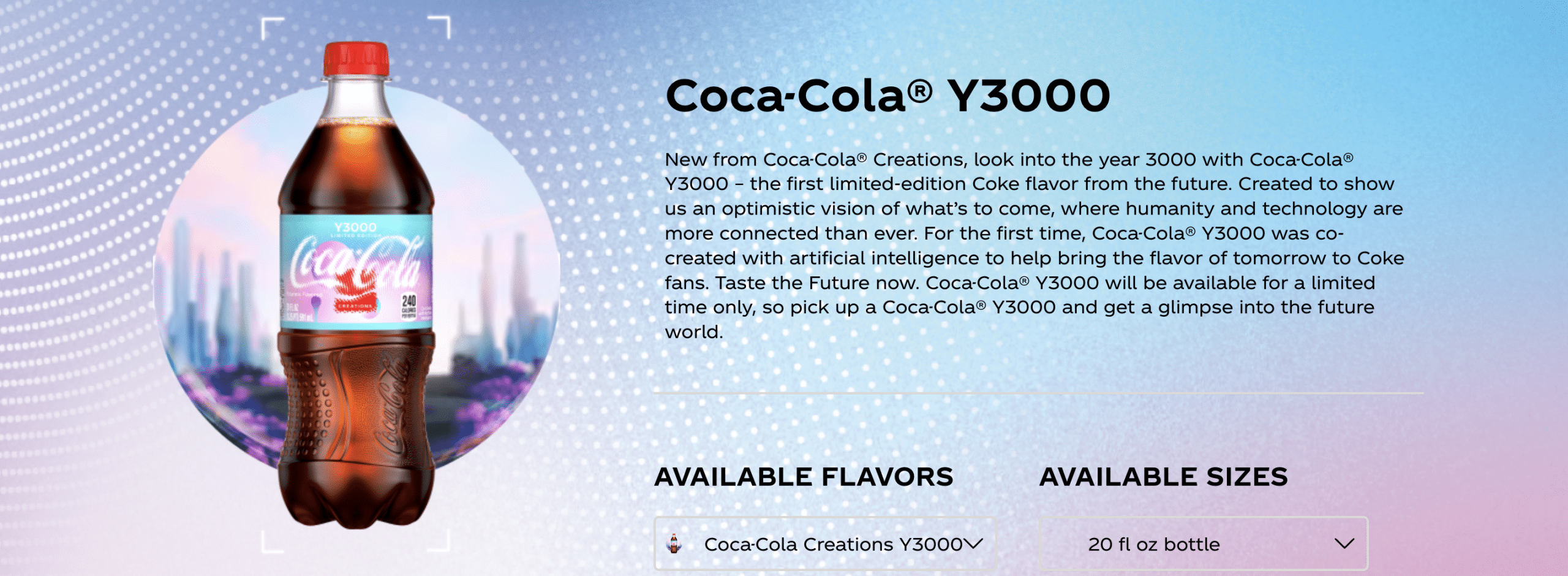 Có tên là Y3000, món thức uống nằm trong bộ sưu tập Creations này được Coca-Cola phát triển dựa trên những insight về thế giới tương lai do AI dự đoán.