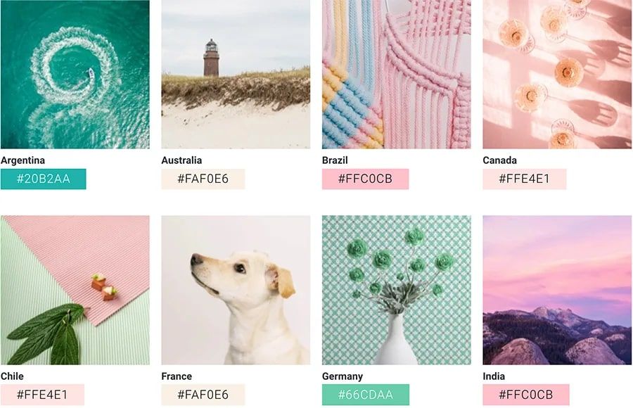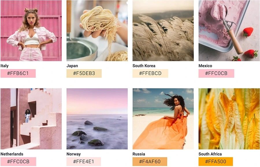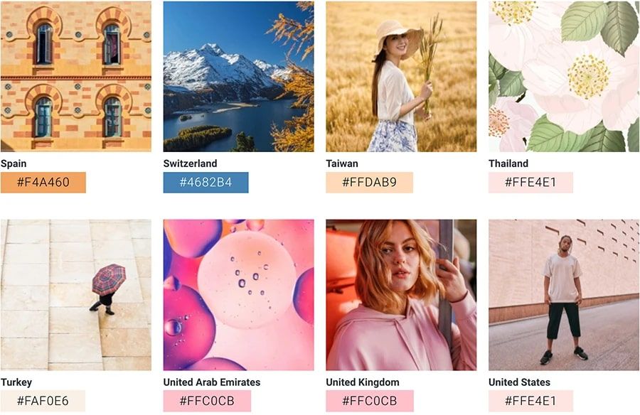 Shutterstock cũng cung cấp các màu sắc phổ biến theo từng quốc gia dưới đây: