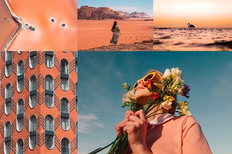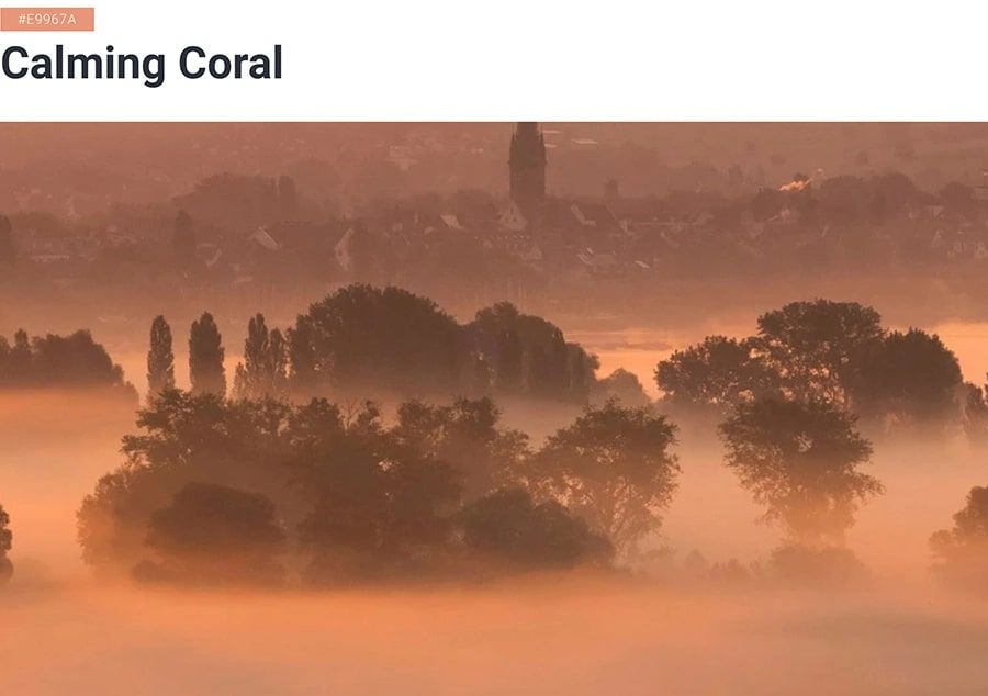 Màu Calming Coral (hồng đào) dịu nhẹ được sử dụng nhiều trong hệ màu pastel, đây là màu được pha trộn khéo léo, phù hợp để phối cùng màu vàng hoặc hồng bụi, tạo cảm giác hoài cổ cho các thiết kế. Nếu kết hợp Calming Coral với màu xanh dương sẽ mang đến sự tự nhiên, hài hoà, nhẹ nhàng và thư thái.