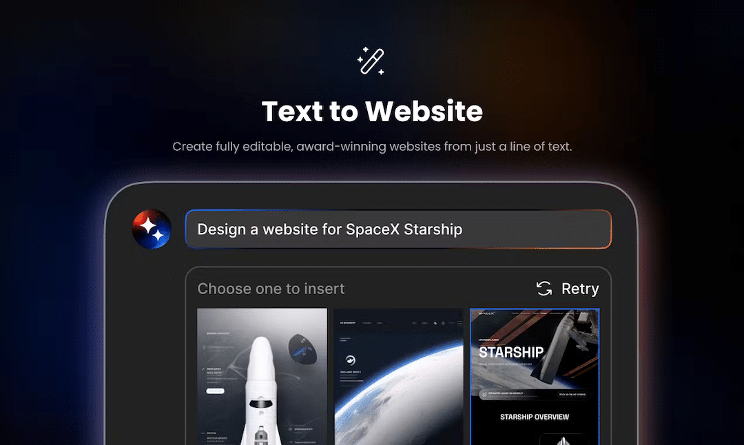 Dora AI có thể tạo ra các thiết kế 3D động đầy mượt mà cho website chỉ từ các prompt đơn giản như “thiết kế trang web cho tàu vũ trụ SpaceX”. Sau đó nếu cần thiết bạn có thể hướng dẫn sửa đổi bằng nhiều lời nhắc văn bản hơn, chẳng hạn như “thay thế bằng mô hình 3D”, hay thậm chí tiến hành triển khai trang web bằng ngôn ngữ bình thường.