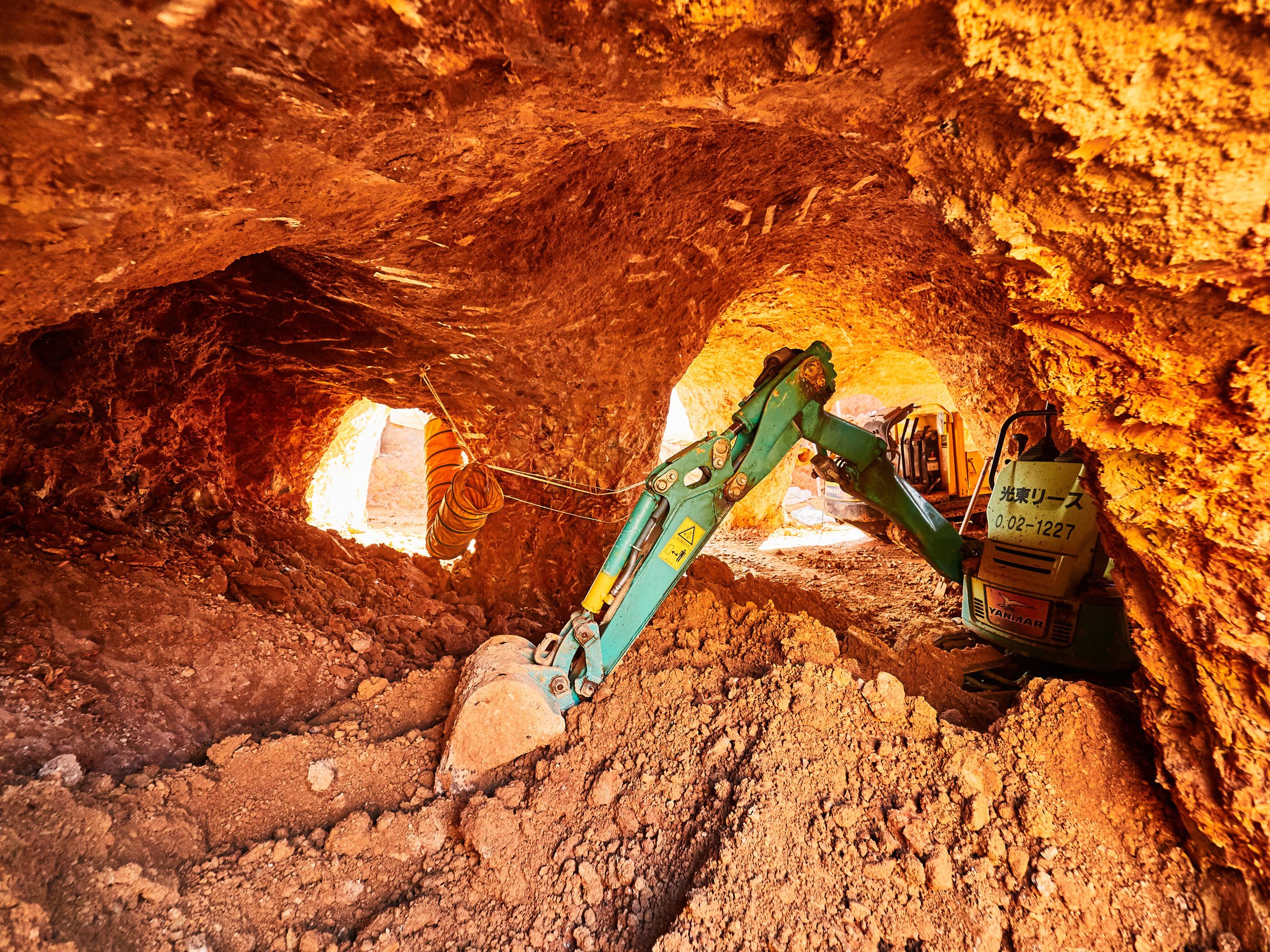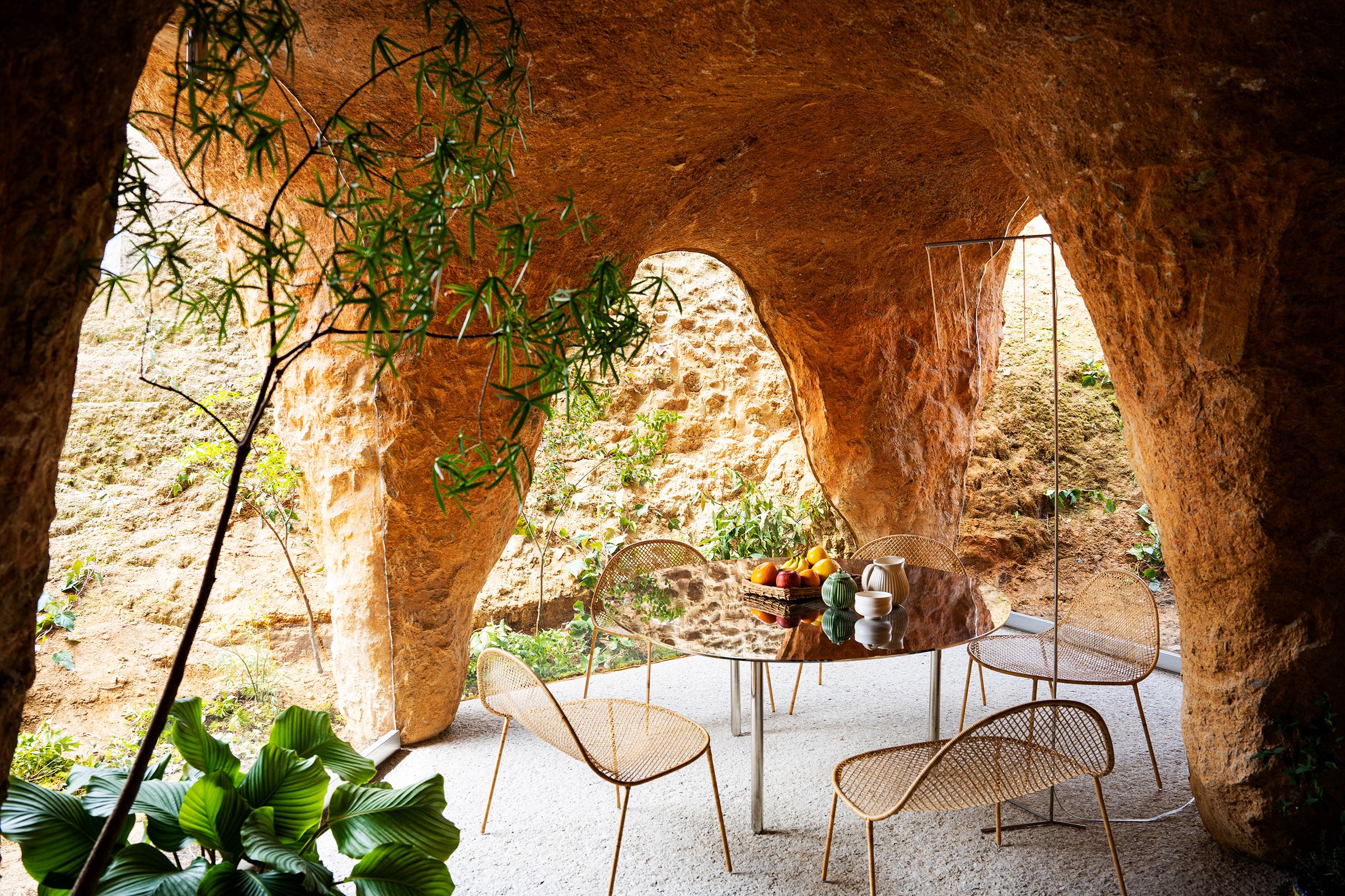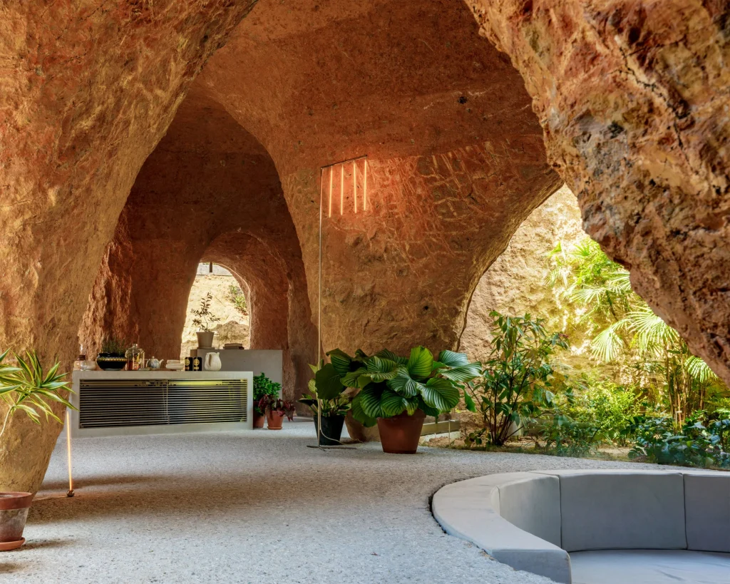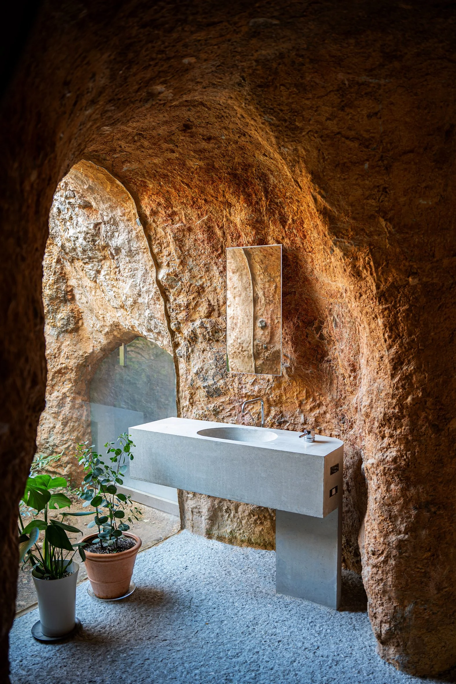 Cấu trúc bao gồm một mê cung các không gian hang động được ngăn cách bởi các lỗ hở hình vòm và các cột giống như thạch nhũ, tất cả đều được làm từ bê tông phủ đầy bùn.