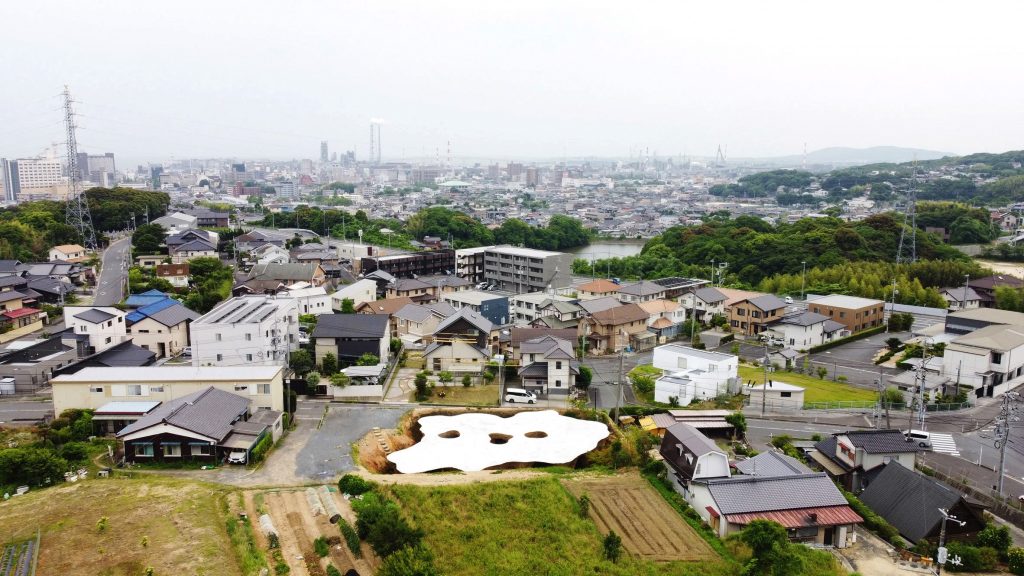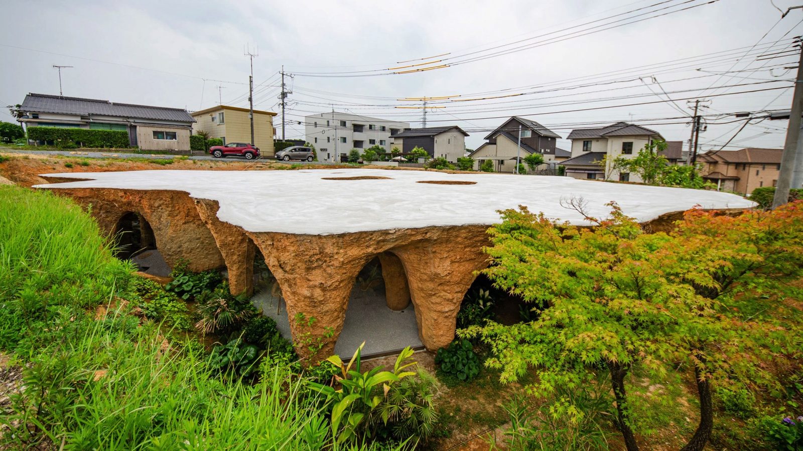 Kiến trúc sư Junya Ishigami vừa cho xây dựng một công trình vô cùng độc đáo ở Nhật Bản, với nóc nhà chính là mặt đường và phần bên ngoài phủ đầy bùn cùng kết cấu được tạo tác bằng cách đổ bê tông vào các lỗ trên mặt đất.