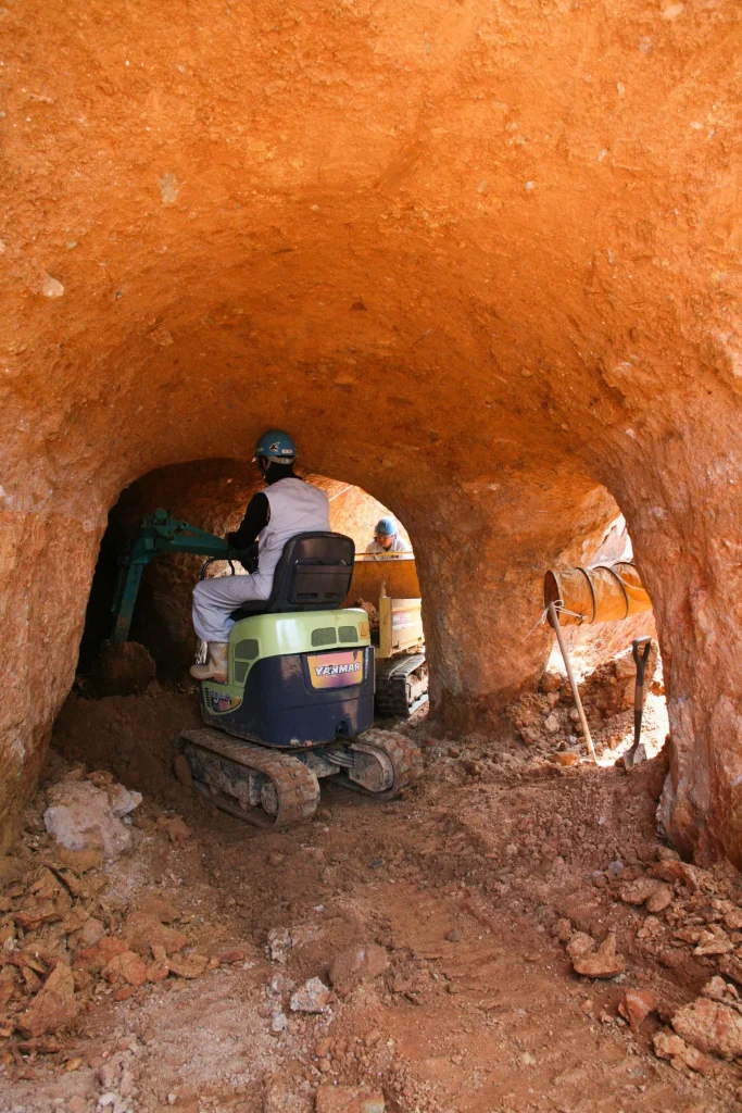 Công trình được xây dựng bằng cách đổ bê tông vào các lỗ được đào trên mặt đất, đóng vai trò như một khuôn kết cấu. Đất xung quanh sau đó được loại bỏ để lộ ra hình dạng khác thường của nó.