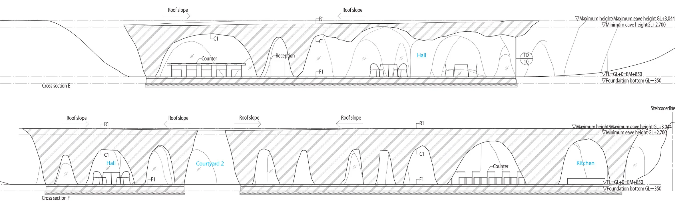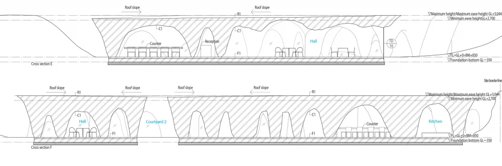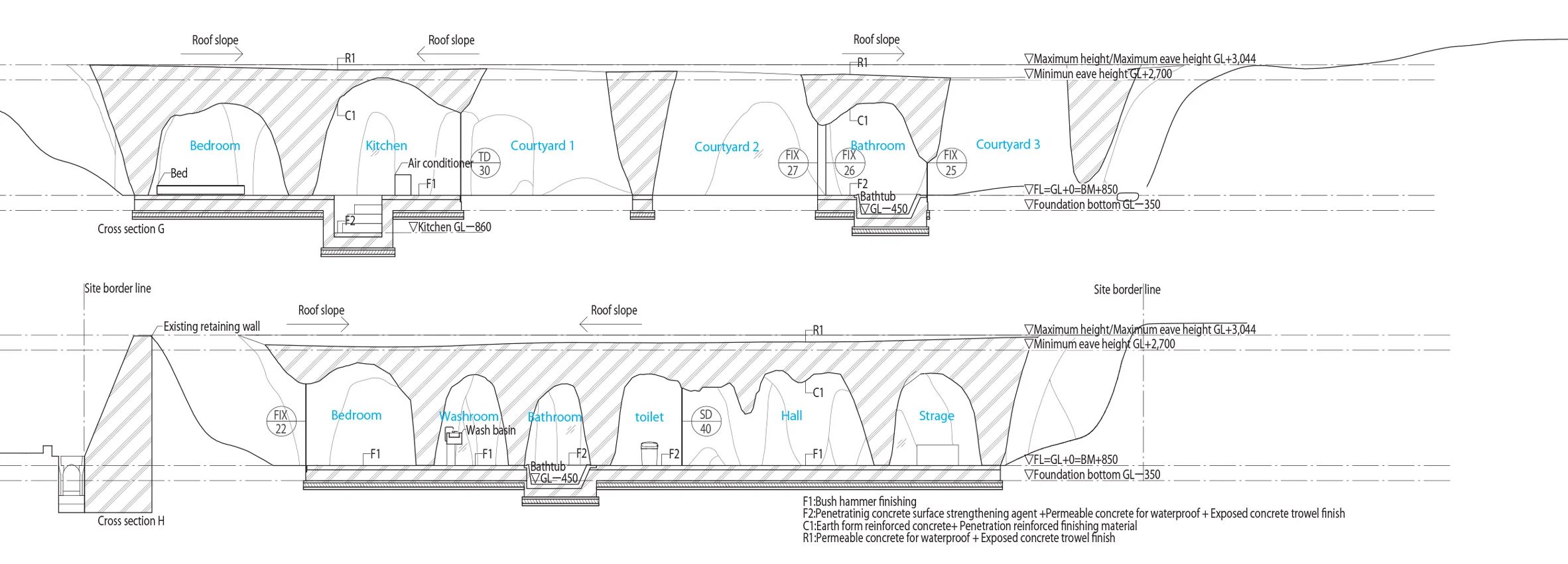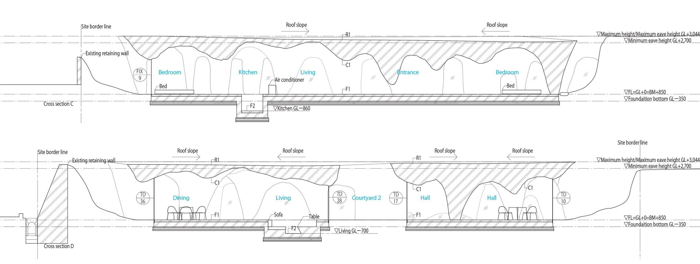 Ishigami chia sẻ với Dezeen rằng để ngăn bùn bị rửa trôi, chúng đã được “làm cứng bằng phương pháp sửa chữa các bức tường bằng đất của Nhật Bản”.