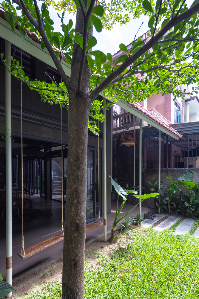 Không gian xanh được tạo nên bởi vườn cây xanh tươi ở khu vực sân trước tuy không rộng nhưng cũng đủ để những bước chân lướt qua đó và chậm lại một phút để hít thở bầu không khí trong lành đến bất ngờ. Đây cũng là nơi để trẻ em thành phố có thể tìm lại những trải nghiệm nho nhỏ với cây cỏ, hồn nhiên chơi trò chơi mà không qua màn hình điện thoại.