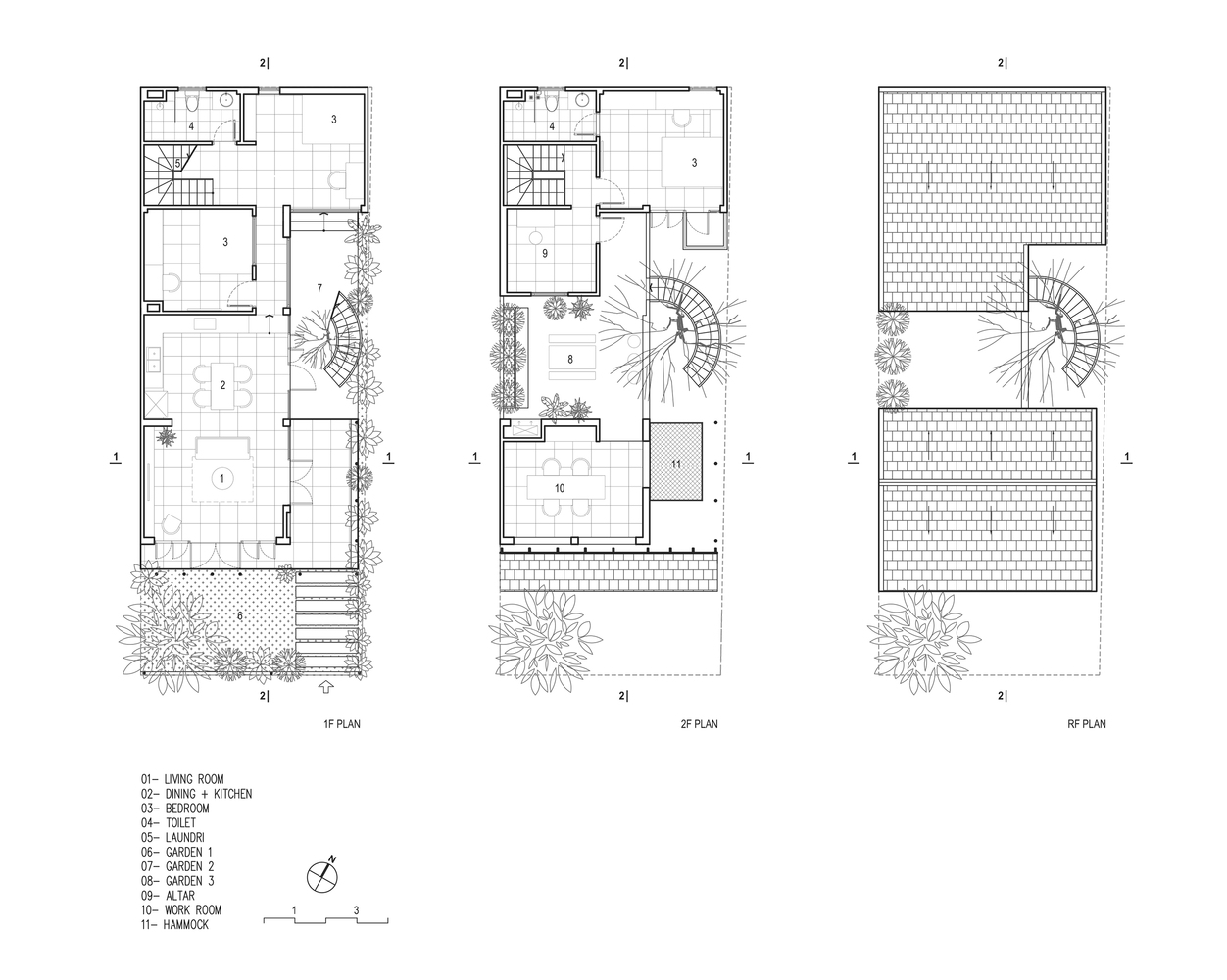 Trong quá trình khảo sát địa điểm hiện có, KTS đã cố gắng thuyết phục chủ sở hữu giữ một cây xanh lớn bên trong khuôn viên. Vì nó là linh hồn của ngôi nhà – những thứ thuộc về thiên nhiên. Giờ đây, cái cây này trở thành điểm nhấn của khu vườn nhỏ trong sân, với cầu thang xoắn ốc ôm lấy cây, kết nối không gian giữa sân trên và sân dưới của ngôi nhà.