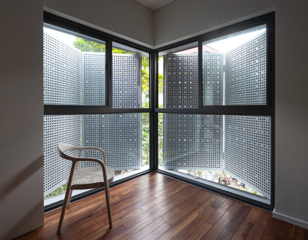 Những mảng đặc lớn bao bọc mặt ngoài ngôi nhà tạo ra một ranh giới để đảm bảo sự riêng tư cần thiết cho người ở. Ranh giới này được làm mờ đi bởi các thủ pháp thị giác mà ánh sáng và âm thanh vẫn có thể lọt qua. Người ở luôn duy trì được sự kết nối giữa trong và ngoài, mỗi khi cần thiết họ có thể lựa chọn phương thức kết nối bằng cách đóng hay mở những phần ranh giới này. Việc đóng mở ranh giới cũng góp phần làm đa dạng và sinh động thêm hình ảnh nhận diện cho ngôi nhà.