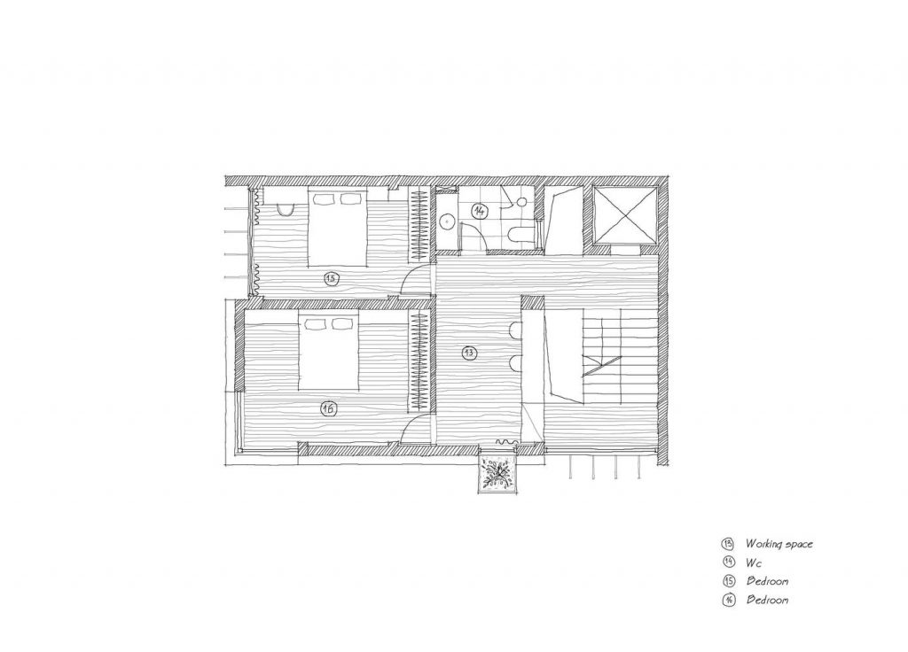 Với tất cả những yếu tố trên, nhóm thiết kế chọn phương án kiến trúc cải tạo với hình khối đơn giản nhưng linh hoạt. Các chi tiết truyền thống như cửa nan chớp, cửa bức bàn và các hệ xà gồ lợp ngói đã được đặt xen kẽ vào không gian hiện đại nhằm mục đích tạo ra những cảm nhận khác nhau đối với mỗi khung hình.