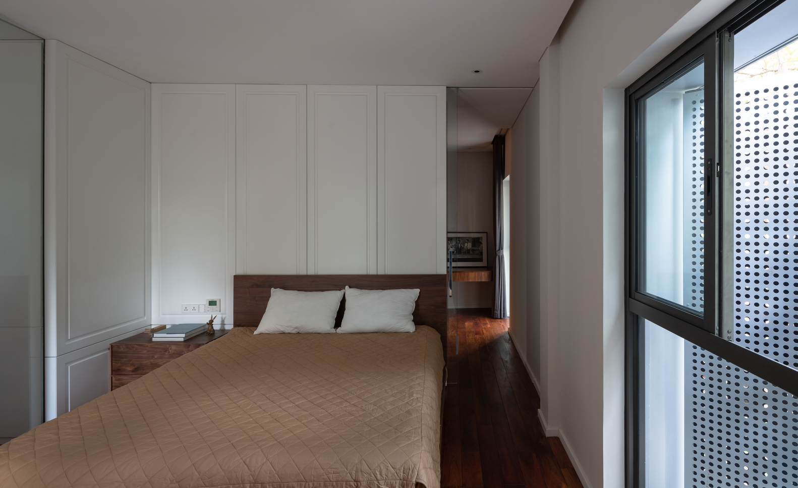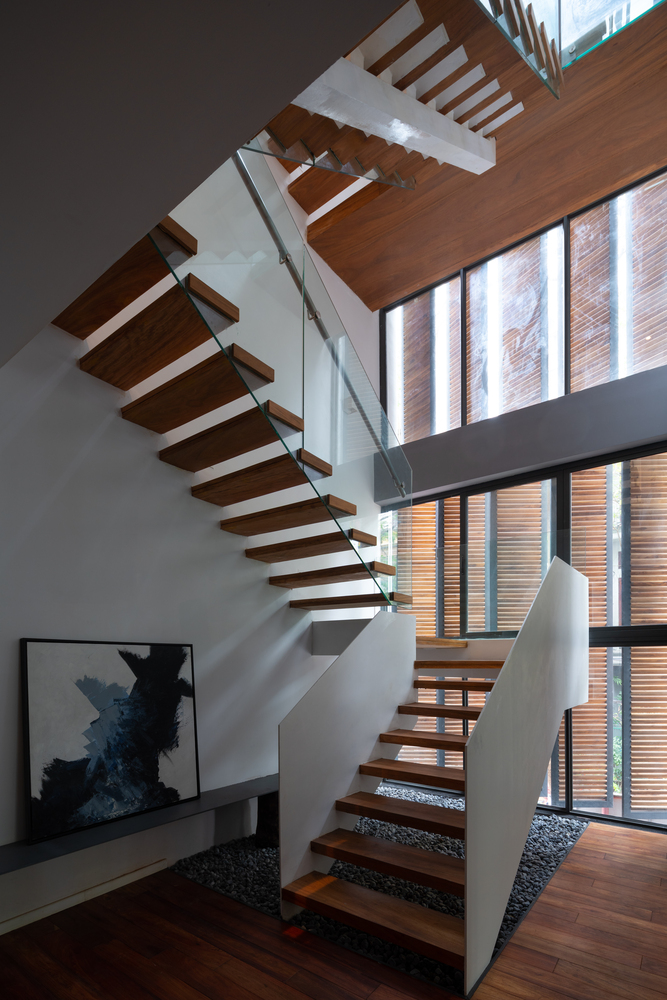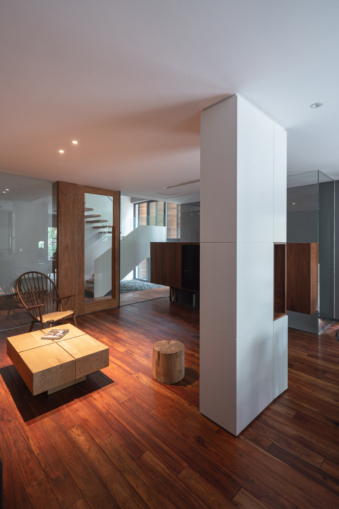 Những mảng đặc lớn bao bọc mặt ngoài ngôi nhà tạo ra một ranh giới để đảm bảo sự riêng tư cần thiết cho người ở. Ranh giới này được làm mờ đi bởi các thủ pháp thị giác mà ánh sáng và âm thanh vẫn có thể lọt qua. Người ở luôn duy trì được sự kết nối giữa trong và ngoài, mỗi khi cần thiết họ có thể lựa chọn phương thức kết nối bằng cách đóng hay mở những phần ranh giới này. Việc đóng mở ranh giới cũng góp phần làm đa dạng và sinh động thêm hình ảnh nhận diện cho ngôi nhà.