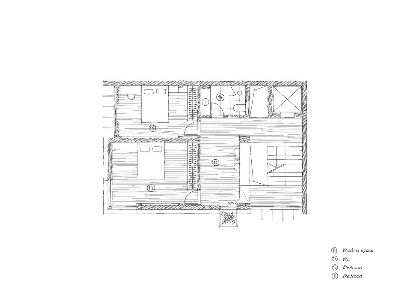 Với tất cả những yếu tố trên, nhóm thiết kế chọn phương án kiến trúc cải tạo với hình khối đơn giản nhưng linh hoạt. Các chi tiết truyền thống như cửa nan chớp, cửa bức bàn và các hệ xà gồ lợp ngói đã được đặt xen kẽ vào không gian hiện đại nhằm mục đích tạo ra những cảm nhận khác nhau đối với mỗi khung hình.