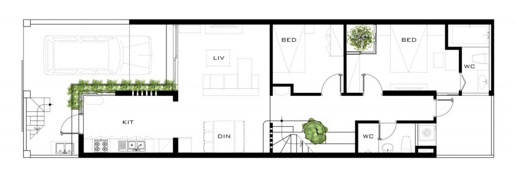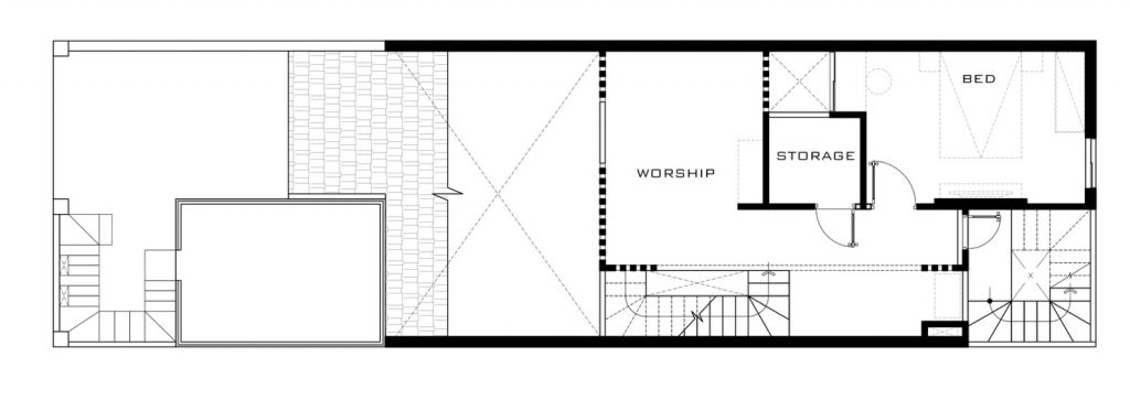 Chủ sở hữu là một cặp vợ chồng đã đến tuổi nghỉ hưu, muốn có sự yên tĩnh và gần gũi với thiên nhiên. Giải pháp thiết kế của KTS là đưa các không gian công cộng lên phía trước để tăng sự kết nối giữa các thành viên trong gia đình và tăng ánh sáng tự nhiên.