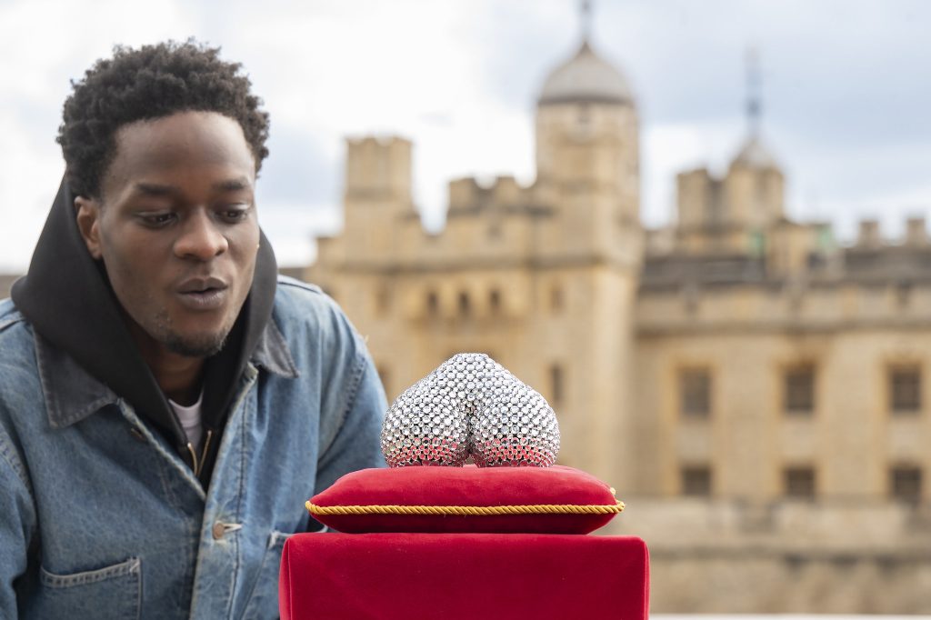 Được trưng bày tại London nhân Tháng Nhận thức về Ung thư Tinh hoàn, tác phẩm mô phỏng một cặp “báu vật” lấp lánh đặt trên đệm nhung, bên trong tủ kính kiểu bảo tàng, đi kèm cả phần chú thích như một hiện vật nghệ thuật chính thống. Tác phẩm do nghệ sĩ mixed media Quentin Devine thực hiện trong vòng hai tháng, với hơn 500 viên đá pha lê được gắn thủ công.
