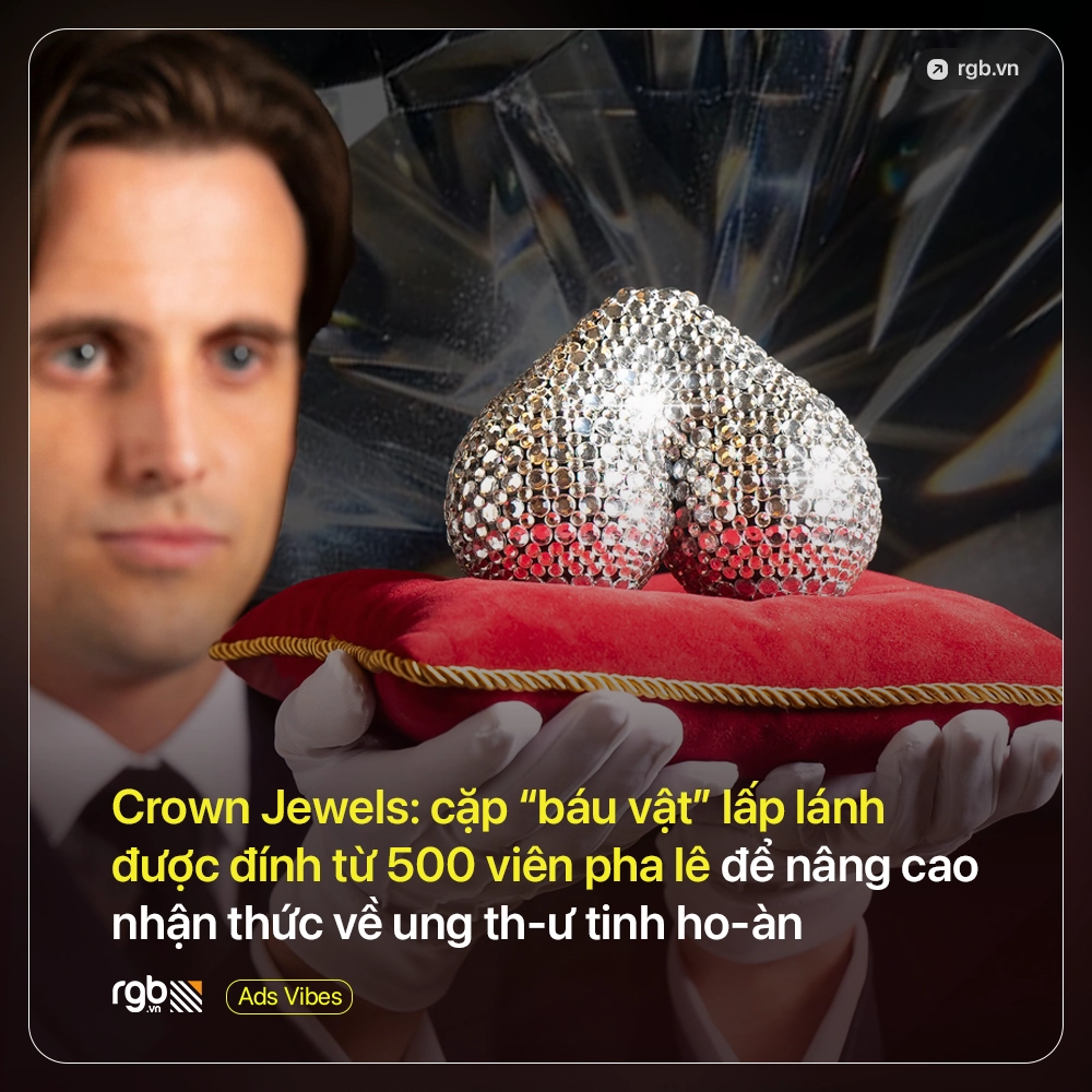 Tổ chức The OddBalls Foundation vừa ra mắt một tác phẩm sắp đặt mang tính hài hước, với hình ảnh một cặp “Crown Jewels” được đính đầy đá quý, nhằm khuyến khích nam giới cởi mở hơn trong việc nói về ung thư tinh hoàn và tầm quan trọng của việc tự kiểm tra định kỳ.