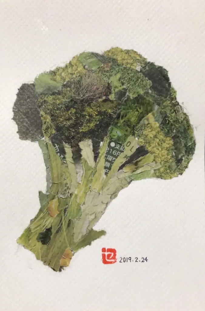 Thoạt nhìn, đó chỉ là một dạng chigiri-e – nghệ thuật xé giấy truyền thống của Nhật. Nhưng khi nhìn kỹ, mọi thứ không còn “đơn giản” nữa. Những bông súp lơ, ổ bánh mì, lát cá, hay những vật dụng quen thuộc… hiện lên với độ chi tiết đáng kinh ngạc. Từng lớp giấy, từng sắc độ màu được ghép lại chính xác đến mức khiến người xem nhầm tưởng là ảnh chụp.