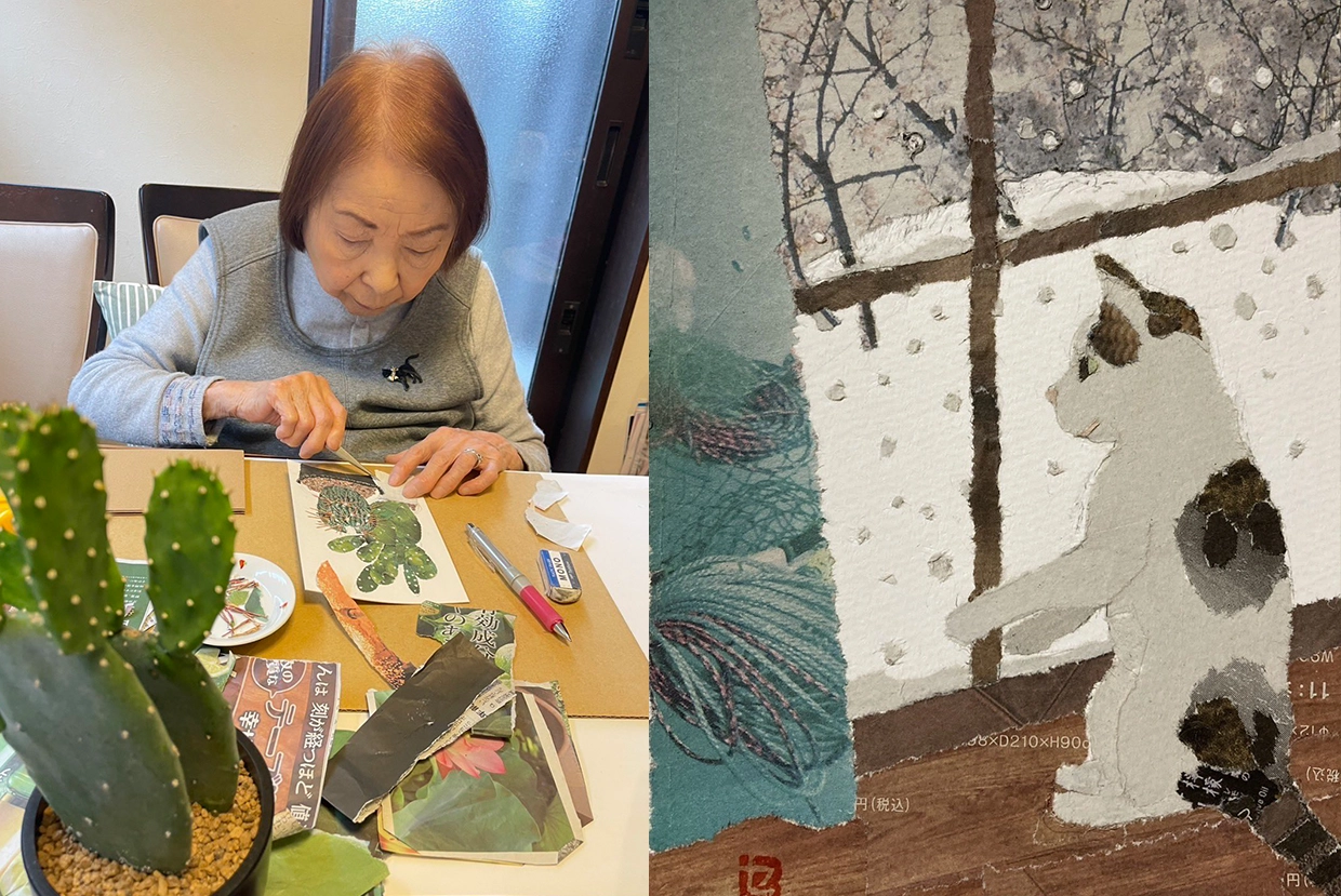 Năm 2019, một cụ bà người Nhật tên Kimura Setsu bất ngờ gây chú ý khi đăng tải những tác phẩm cắt dán từ báo cũ lên mạng xã hội. Không qua trường lớp, không nền tảng mỹ thuật, bà chỉ đơn giản xé những mảnh báo và ghép lại thành hình.