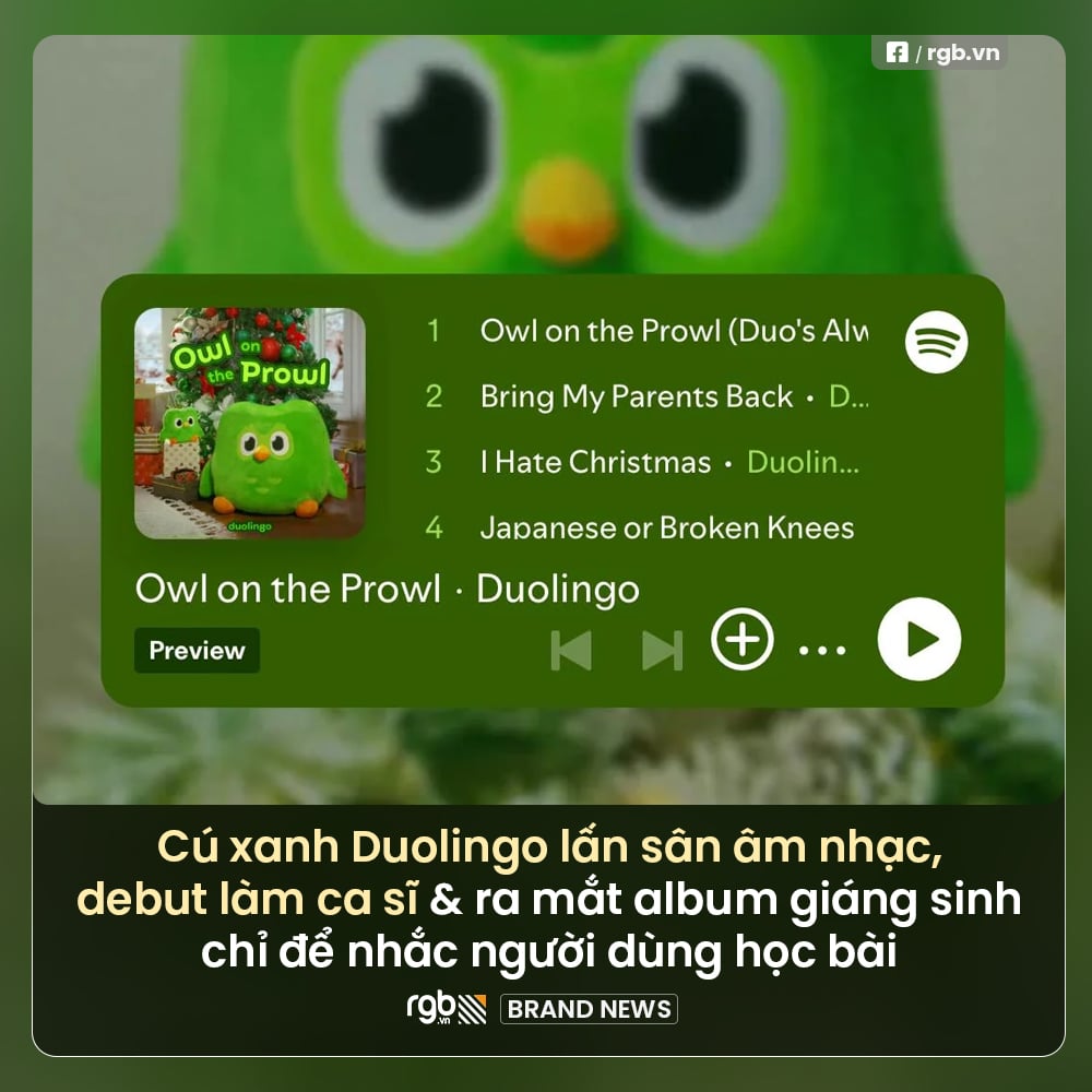 Trước thềm Giáng sinh, cú xanh Duolingo bất ngờ lấn sân sang lĩnh vực âm nhạc, chính thức debut làm ca sĩ và ra mắt album mang tên “Owl on the Prowl”.