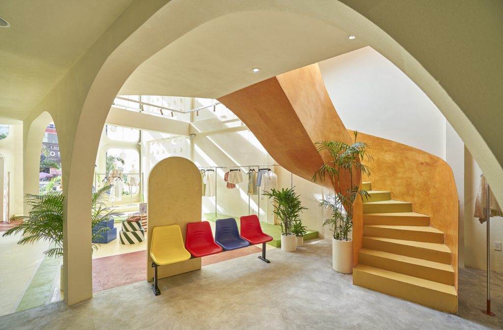 Những không gian mà “chúng ta” thường tụ tập – sân tennis, phòng thay đồ, bể bơi, v.v … chính là nguồn cảm hứng thiết kế của công trình. Không khí nhộn nhịp, tươi vui là nét đặc trưng của vị trí dự án này – khu vực tập trung nhiều trường đại học. Chính vì điểm đặc biệt đó mà cửa hàng flagship của thương hiệu thời trang Libe đã ra đời.