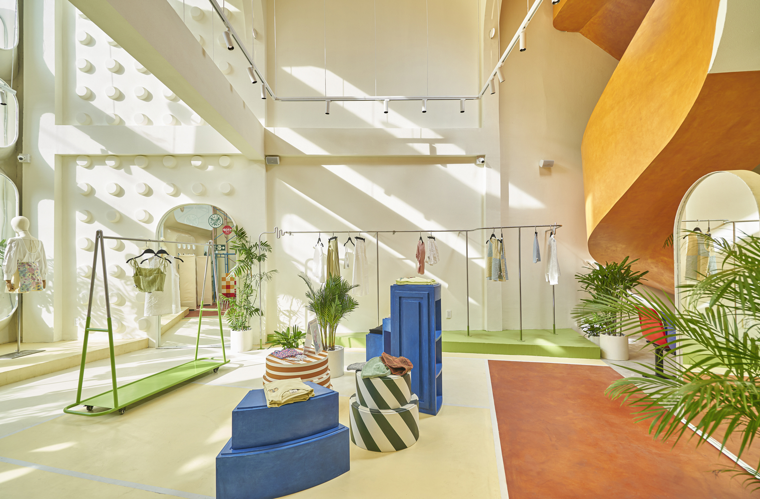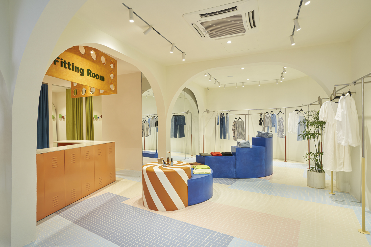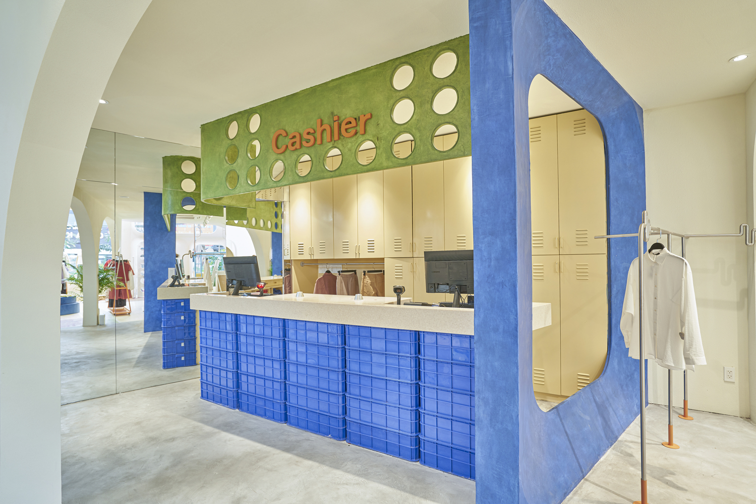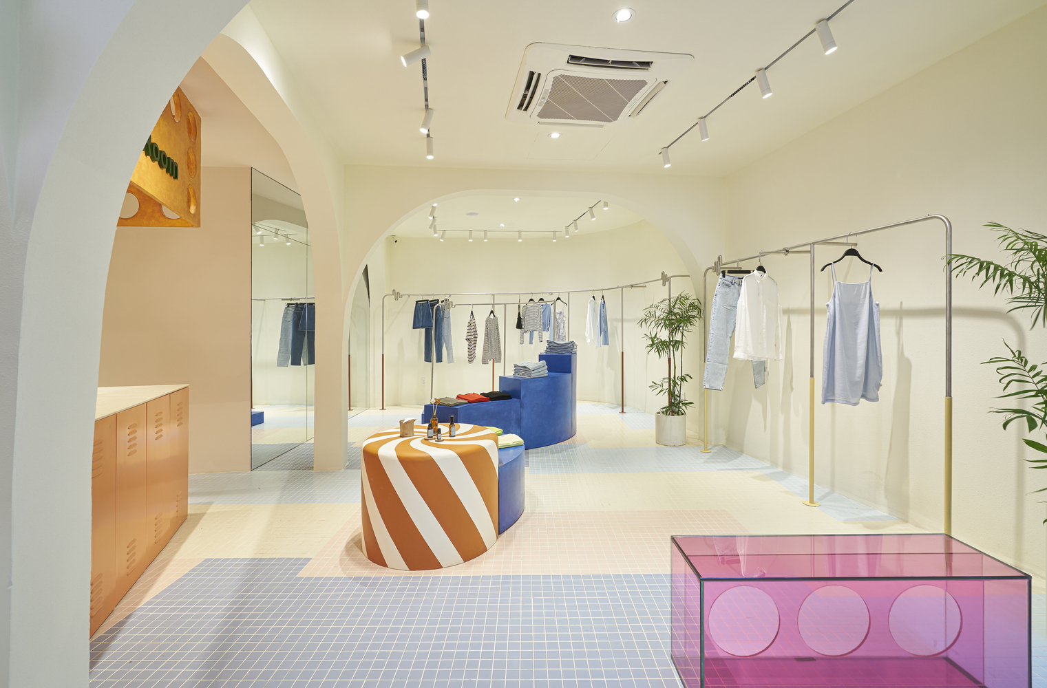 Phòng thử đồ mang hơi hướng locker room, là nơi mọi người cất đồ đạc và biến hóa bản thân, mở tủ quần áo ra là biến thành cô nàng tiệc tùng…