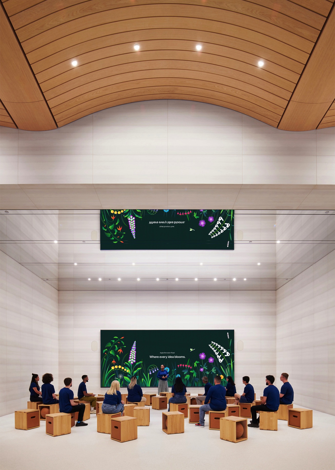 Để đánh dấu sự kiện khai trương lần này, Apple lần đầu tiên cho ra mắt United Visions, loạt trải nghiệm thực tế ảo tăng cường đặc biệt với các tác phẩm của nhà thơ và họa sĩ gốc London là William Blake.