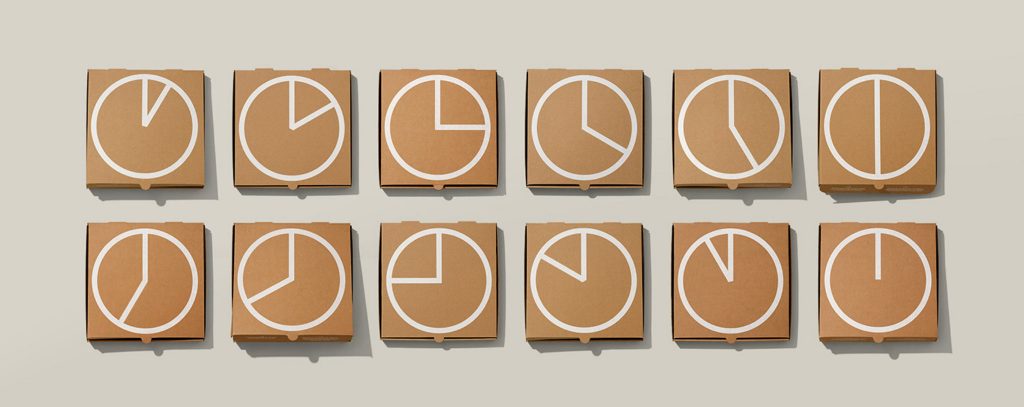 Cụ thể, 12 hộp bánh khác nhau đã được thiết kế cho 12 khung giờ giao hàng trong ngày. Nếu có khách đặt pizza vào lúc 1 giờ chiều, họ sẽ nhận được bánh trong chiếc hộp có hình đồng hồ chỉ 1 giờ, kèm lời nhắn nhủ “thực ra 1 giờ sáng cũng là thời điểm tuyệt vời để ăn pizza”.