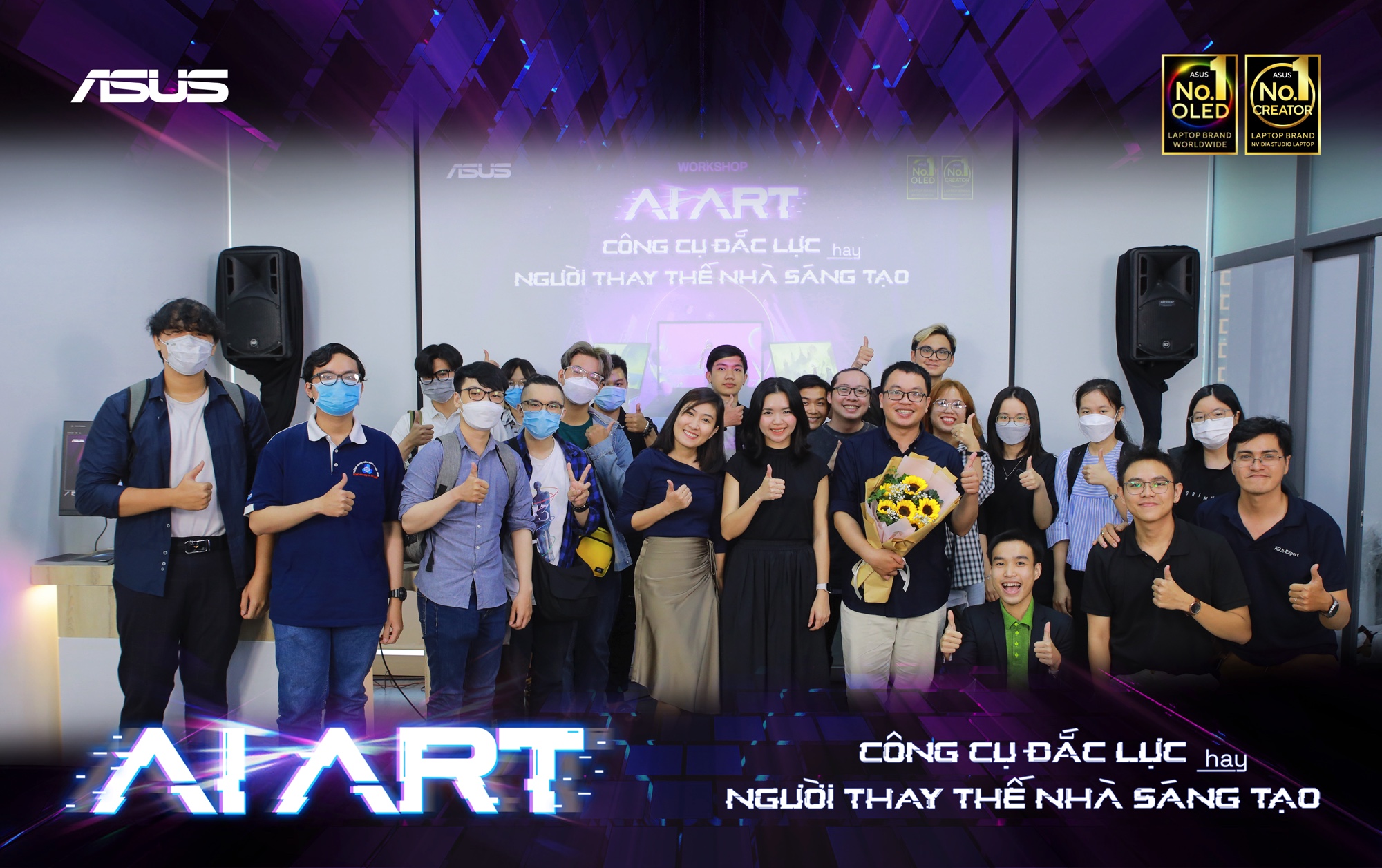 Không những có cơ hội hiểu rõ về những thiết bị nổi trội từ ASUS, những người tham dự Workshop “AI Art – công cụ đắc lực hay người thay thế nhà sáng tạo?” còn được lắng nghe về cơ hội thực tập tại công ty công nghệ hàng đầu Việt Nam. Khám phá những dòng máy “bậc thầy” về tính năng trong hành trình cùng AI ART tạo nên những tác phẩm hiện đại và với những bạn xem online cũng đã có cơ hội nhận ngay màn hình ASUS VZ24EHE TRỊ GIÁ 3.390.000 VNĐ khi xem livestream Workshop trên Fanpage ASUS Vietnam.