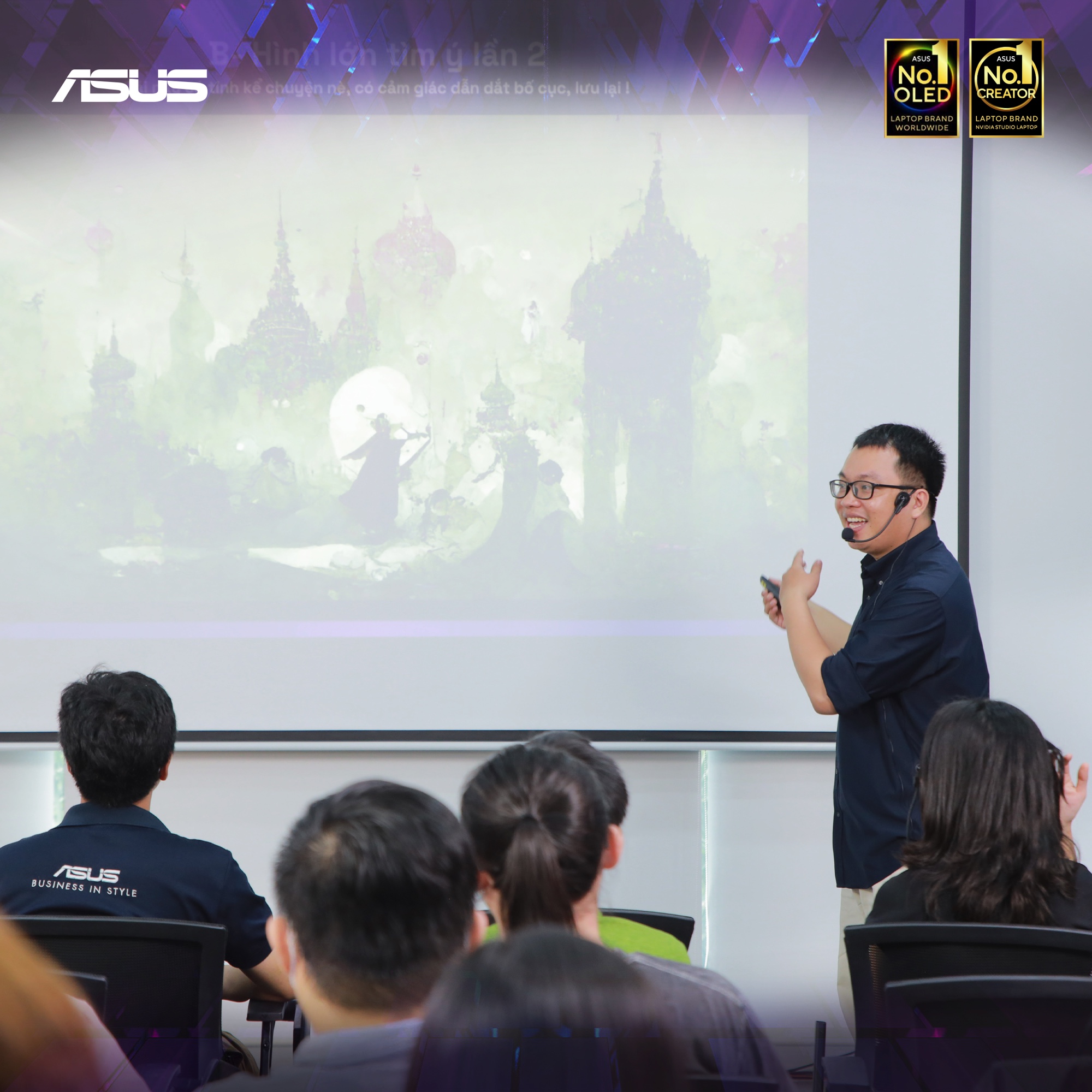 Cũng tại Workshop, anh Nguyễn Hoàng Chương – Technical PR tại ASUS Việt Nam đã có những giới thiệu mới về các dòng sản phẩm hiện đại của ASUS. Thông qua đó làm nổi bật những tính năng “đắc lực” bổ trợ cho các nhà sáng tạo trong hành trình khai phá tiềm năng AI ART.