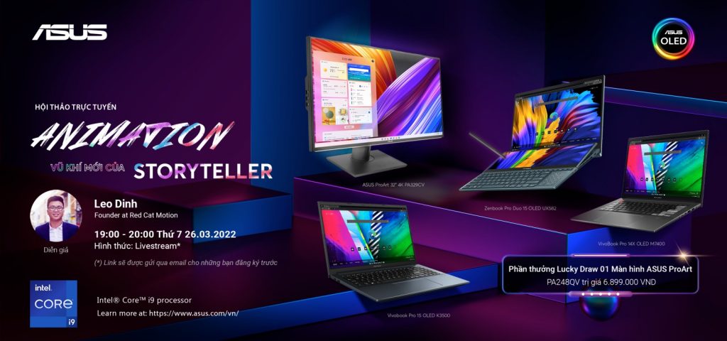 Bên cạnh dòng “vũ khí tối tân” được trình làng đến các nhà sáng tạo trẻ, ASUS còn mang đến những cơ hội tuyệt vời khác. Đó chính là ASUS ProArtist Award 2022 nhắm tìm kiếm và tôn vinh những tài năng trong giới sáng tạo nghệ thuật hay ASUS Internship Program 2022 – Chương trình thực tập sinh tài năng đến từ ASUS Việt Nam hứa hẹn sẽ mang đến những cơ hội tuyệt vời dành cho các bạn đăng kí theo dõi livestream Hội thảo “Hội nhập làm quảng cáo bằng Animation”.