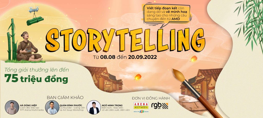 Thử một lần để trí tưởng tượng được tự do bay bổng cùng chương trình “Storytelling” đến từ AMD. Từ 03 mẫu truyện đặc biệt vẫn còn đang dang dở đoạn kết, hãy chọn ra 01 mẫu truyện mà bạn yêu thích nhất, sau đó sáng tạo đoạn kết thật thú vị theo cách riêng của mình. Tổng giải thưởng lên đến 75 triệu đồng đang chờ các tài năng sáng tạo đấy!