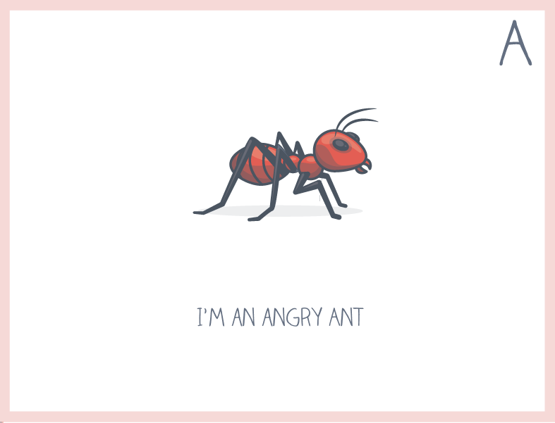 Trong cuốn sách này, nhà thiết kế Al Power đã dùng những hình ảnh sinh động kết hợp cùng từ ngữ vô cùng đặc sắc và thú vị. Ví dụ ở chữ A, ta có “angry ant”, chữ B ta có “buzzy bee”,… Một sự sáng tạo thật tuyệt vời, phải không nào !